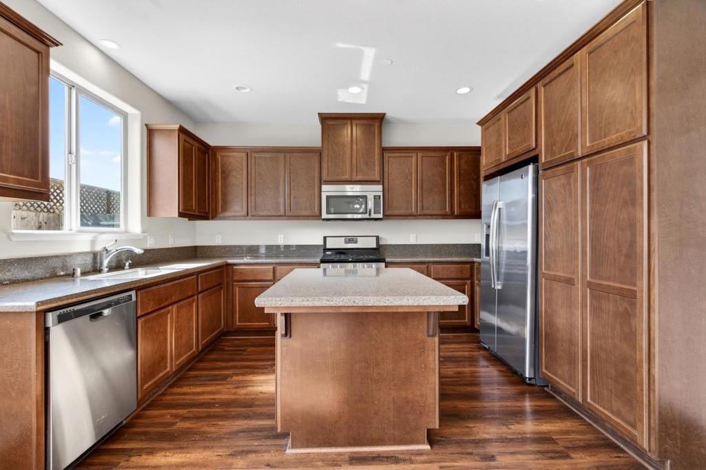 Elegant 4-Bed, 2.5-Bath Home with Gourmet Kitchen and Private Backyard. This fabulous home offers a bright, modern living space with thoughtful upgrades throughout. The gourmet kitchen features granite countertops, a breakfast bar, stainless steel appliances, and recessed lighting, perfect for entertaining and everyday meals. The open family/dining area boasts a high ceiling and a sliding glass door that opens to a well-manicured, landscaped backyard. The inviting primary suite includes a double vanity and a tile stall shower. Practical amenities include indoor laundry and energy-efficient double-pane windows. A two-car attached garage rounds out this impressive home in a prime location close to commute routes, shopping, dining, parks, golf, and schools.