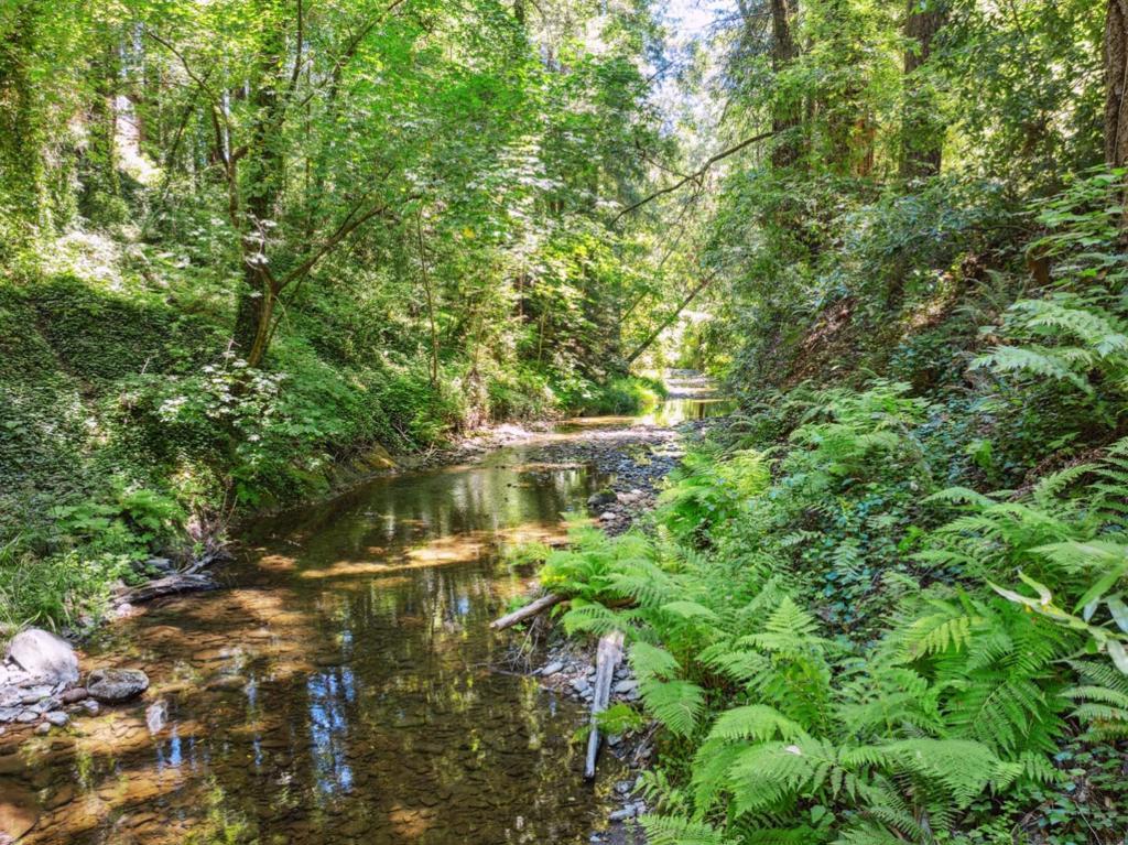 Location, location, location. Private along the creek, yet close to town with an easy drive to Silicon Valley, the beaches and nearby state parks. This charmer has a gourmet kitchen that steals the show with gleaming quartz countertops, custom soft-close cabinetry, a large center island and new stainless-steel smart appliances, it is the heart of this modern 2-story home. Quietly tucked at the end of a private lane the 2,133-SF residence offers a rare blend of privacy, luxury and natural beauty. With 4 spacious bedrooms and 3 bathrooms it's ideal for families, guests, remote workers or anyone seeking room to breathe and unwind. Vaulted ceilings and skylights fill the interior in natural light, while a dedicated laundry room with new stackable washer and dryer adds everyday ease. Living flows seamlessly outdoors to a 1,525-sq-ft redwood deck perched above year-round Bear Creek, a beloved feature of the home. Whether sipping morning coffee, practicing yoga or hosting evening gatherings, the serene forest setting delivers unmatched peace and privacy. All on just over half an acre, minutes from downtown Boulder Creek yet worlds away in its tranquil redwood sanctuary. A fully equipped smart home designed for remote monitoring, it blends today's technology with timeless natural beauty.