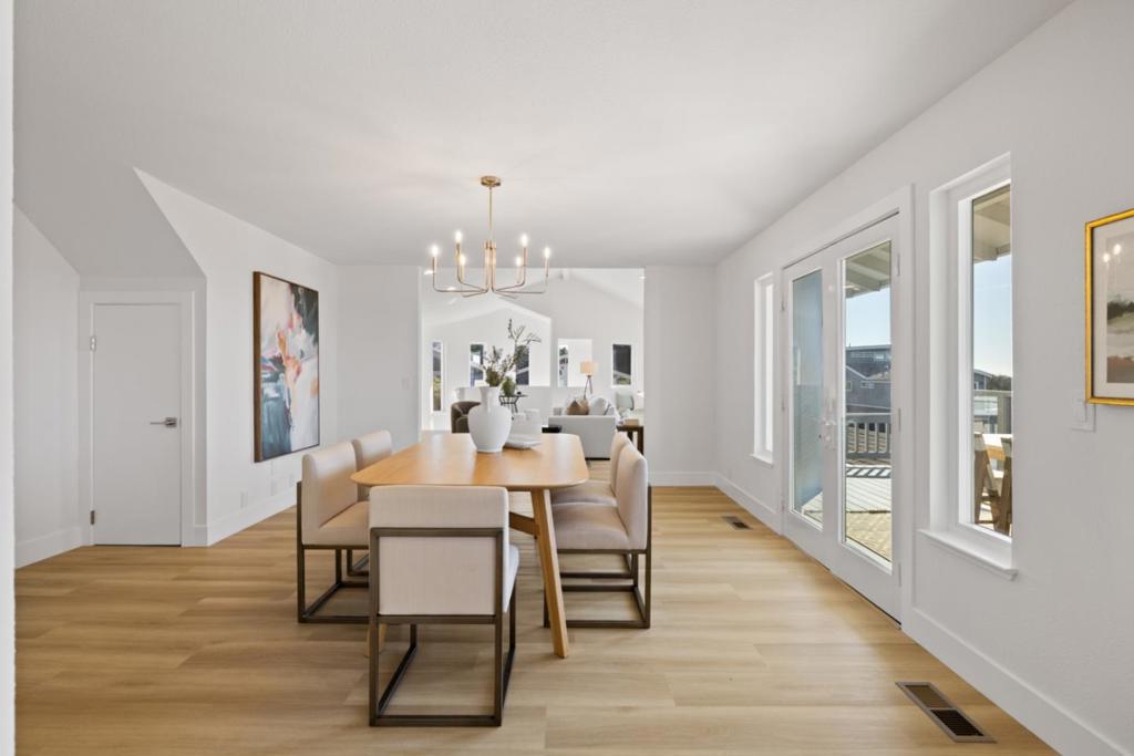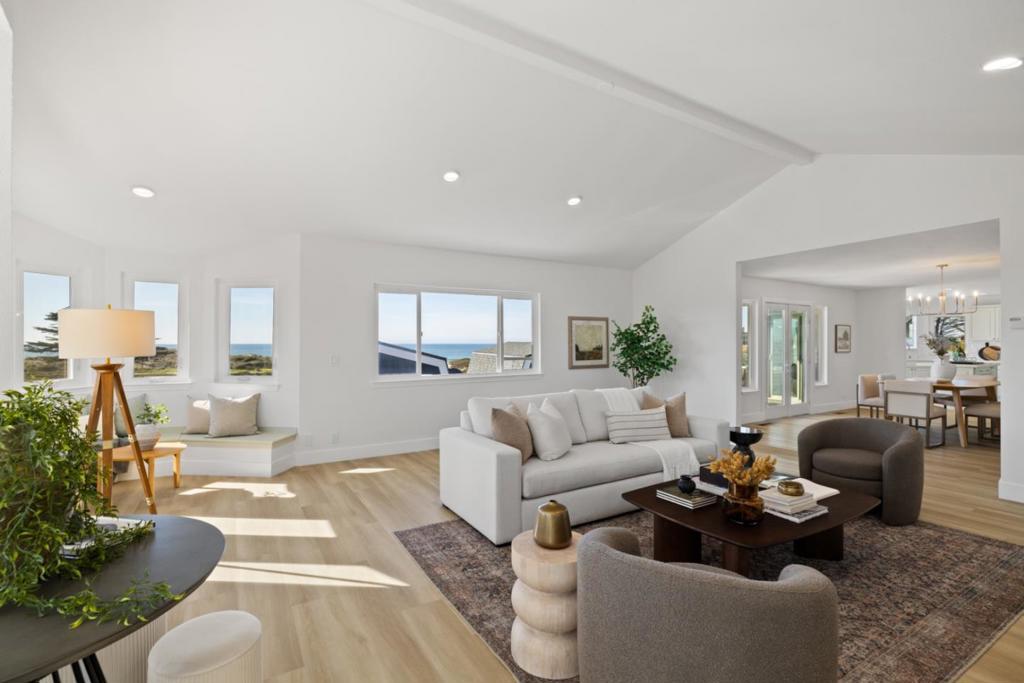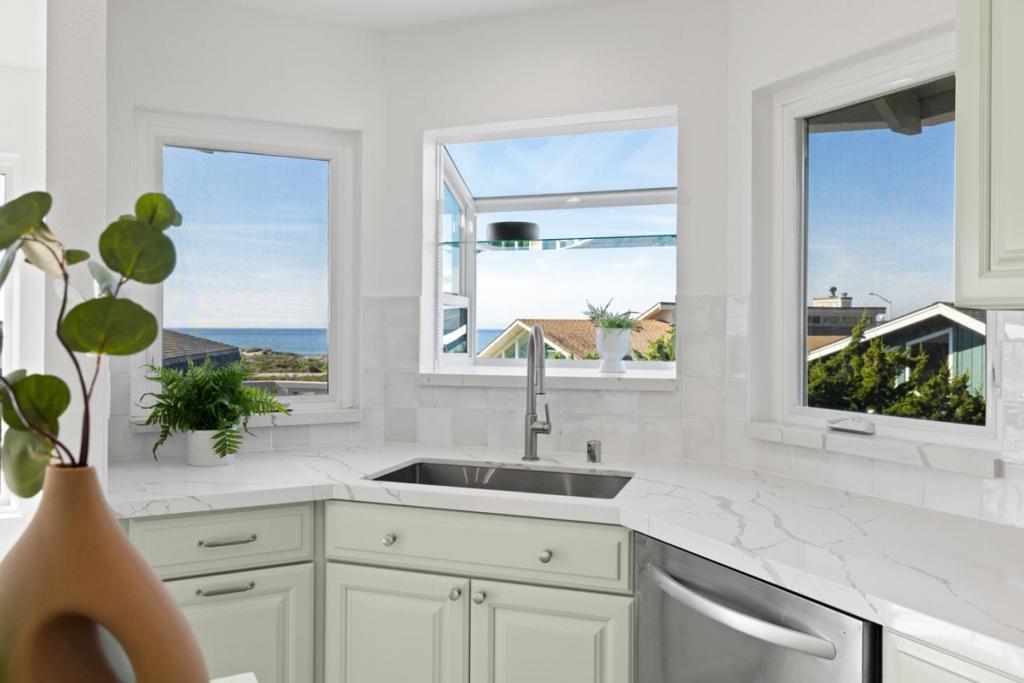 Perched steps from the oceanfront, this exceptional home delivers views, views, views from nearly every angle, designed to fully embrace its breathtaking 180-degree ocean panorama. A unique reverse floor plan elevates the main living spaces, ensuring uninterrupted coastal vistas and dramatic light throughout the home. The primary suite is a true retreat, featuring expansive ocean views, two walk-in closets, a conveniently located laundry within the closet, and a spa-worthy bathroom that feels like a private sanctuary above the sea. Thoughtful craftsmanship is evident throughout, from the elegant curved staircase to the open-concept living spaces that seamlessly blend comfort, flow, and sophistication. The upper levels showcase a beautiful third-floor flex space, ideal for a home office, workout studio, or relaxed family loungeeach option enhanced by sweeping ocean views. On the practical side, the home includes an exceptional garage mudroom and laundry space, perfectly designed for easy transitions after a day at the beach and effortless organization. With its striking architecture, refined details, and unforgettable setting, this oceanfront residence offers a rare opportunity to live immersed in coastal beauty without compromising functionality or style.