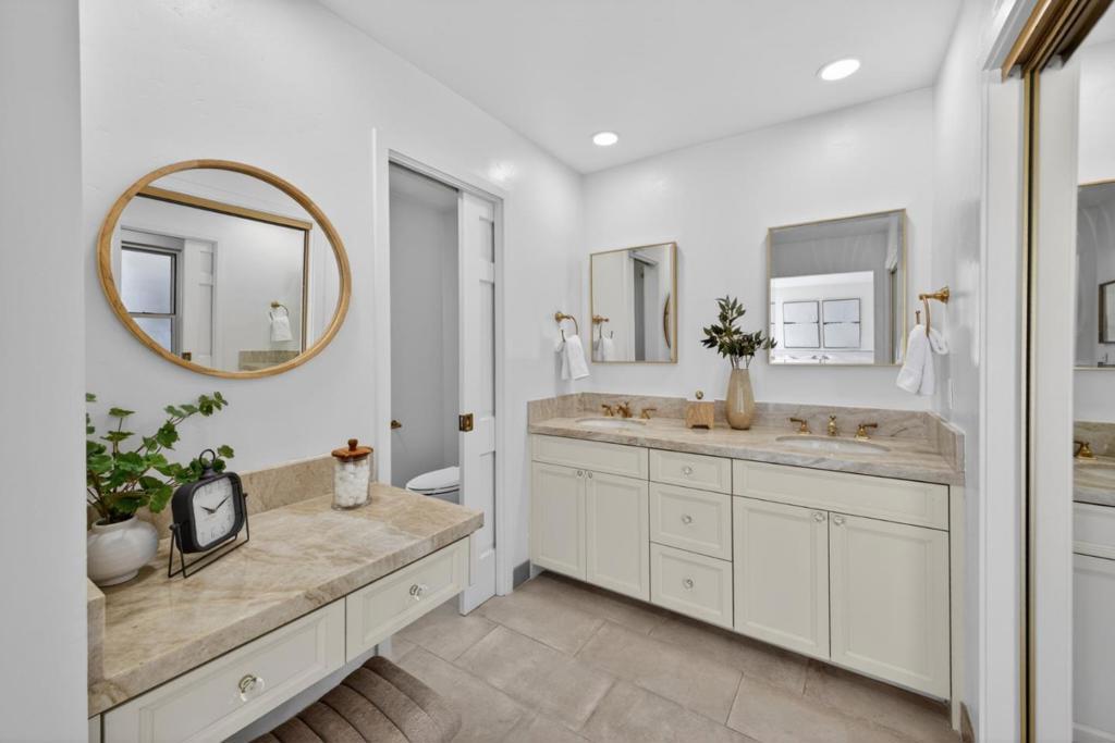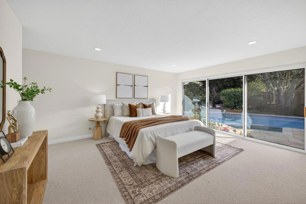 Welcome to this spacious home in the Waverly Park neighborhood. This expansive home features four bedrooms and two full bathrooms in the bedroom wing. A half bath accommodates the living areas. Pass into the primary suite and feel the space expand with natural light pouring in from the southwest facing wall of glass. Sliders access the pool area opposite french doors leading to the garden. The updated kitchen has top of the line stainless steel appliances, new quartz countertops, and pantry...with casual dining area and ample built in cabinets nearby. Adjoining family room keeps the cook in the conversation. Backyard views thru the extended glass wall, from the breakfast nook all the way to the gas starter fireplace. The large living room and formal dining room allow for hosting any event. Separate laundry room/utility room off the 3-car garage. The pass-thru to Oak Elementary means kids do not cross any street on the way to classes. Short drives to shopping, medical, commutes, and entertainment. Come take a look...you'll never want to leave.