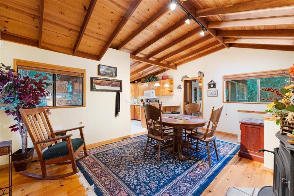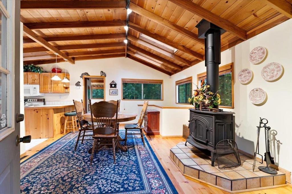 This sweet home is bursting with mountain charm! Tucked within the desirable residential community of Forest Lakes, this thoughtfully constructed two-bedroom, two-bathroom home is surrounded by majestic redwood trees and located near a private, seasonal recreational pool. The home features pine wood flooring, two well-appointed bedrooms each with en suite bathrooms, and a private deck off the primary bedroom. An office nook off the living room provides flexible workspace, while a functional wood-burning stove adds warmth and ambiance to the living area. The seller would like to sell fully furnished!