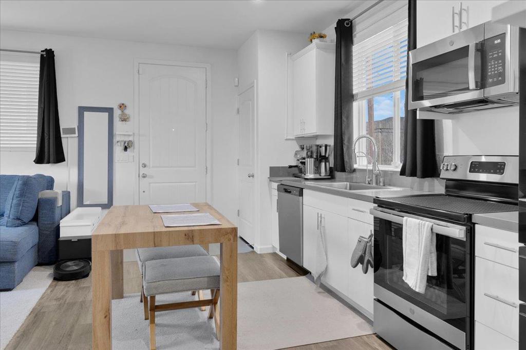 Modern 1 bed/ 1 bath condos like this dont come up often! This beautifully maintained upstairs, duplex-style unit offers a sleek, energy-efficient design paired with smart-home upgrades and scenic surroundings. Pull into your private attached 1-car garage and head upstairs to an open-concept kitchen & living area designed for both comfort & efficiency. The modern kitchen features stainless steel appliances, clean contemporary finishes, and a reverse osmosis drinking water faucet at the sink. All appliances are included, including a stacked washer and dryer conveniently located just across from the bedroom. The spacious bedroom offers generous closet space; the bathroom features clean modern lines. This home is packed with high-value upgrades, including solar panels for predictable energy costs, water softener, Tesla & Ford EV chargers, smart lock, & Google Homecontrolled lighting & temperature. Enjoy a desirable front-facing community view, while rear-facing windows overlook a walking trail, open field, and views of the Gabilan Range. Direct access to the trail just behind this unit. Pinnacles National Park approx 20 min away. Located in a well-kept community, low HOA, offers modern living, smart technology, & a lifestyle that blends convenience, efficiency & natural beauty. .