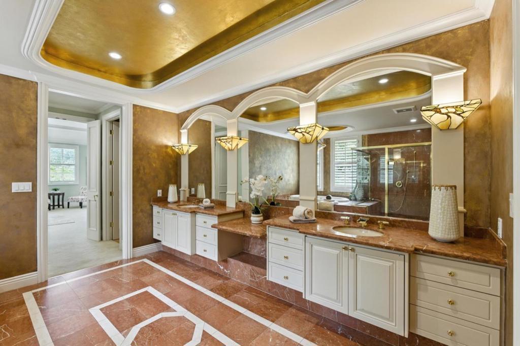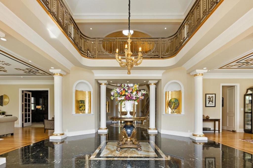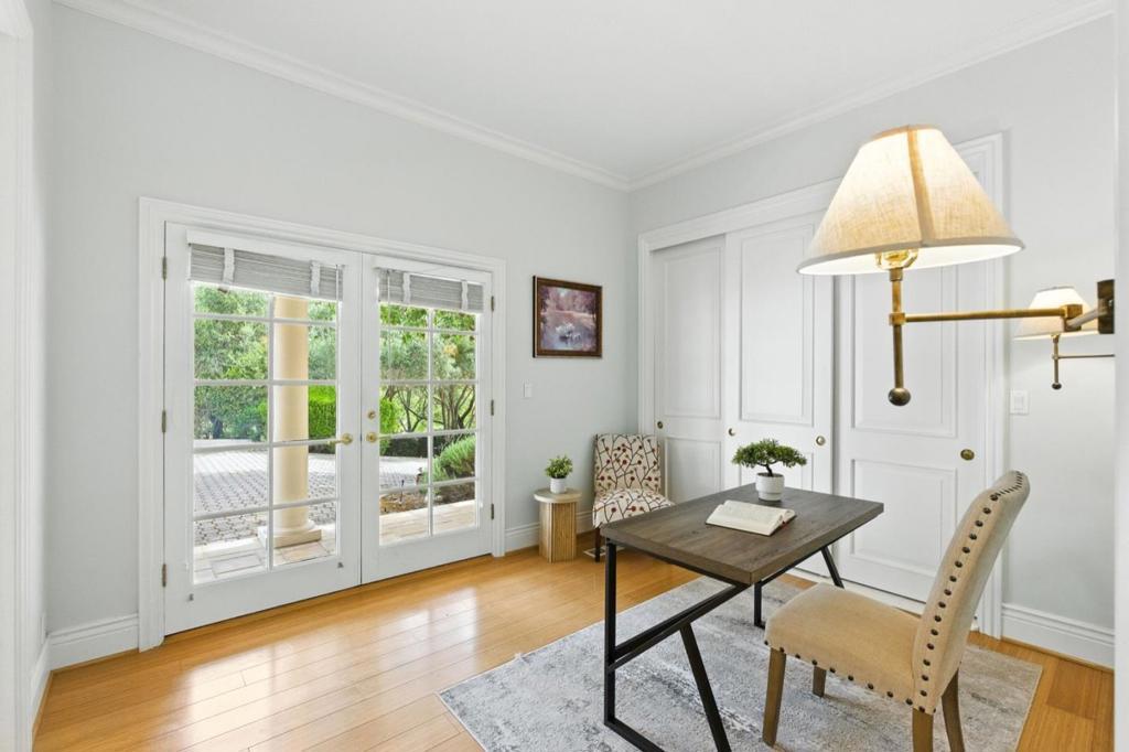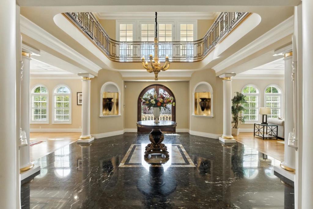 Elegant Mediterranean Classic two-story estate blending old-world charm with modern comfort. Located at the end of a quiet cul-de-sac for exceptional privacy, the home features Roman columns, ornate ceilings, and an open floor plan. Main level includes formal living and dining rooms with butlers kitchen, mahogany-paneled library, office suite, and kitchen-family room overlooking the lush backyard. Five generously sized bedroom suites upstairs, including an expansive primary suite with sitting area. Resort-style backyard with pool, spa, and home theater. Minutes to Sand Hill Road, Stanford, and major tech campuses. Top Los Lomitas schools.