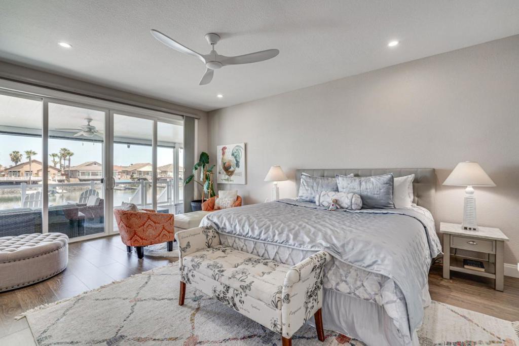Tour this exceptionally remodeled 2 story charmer in Discovery Bay waterfront. No HOA's! High vaulted ceilings, skylights, modern recess lights, propeller ceiling fans, open concept showers, heated bidets, LED backlit frameless mirrors, Acrylic free standing tub, stylish modern handrails, non-obstructed glass panels, & lots more. Double up your delight with a Boat Dock & Entertainer's Platform Dock, hydro-hoist is included. Kitchen center island, walk in pantry, wine refrigerator, stainless steel appliances, breakfast nook, eat-in-kitchen, counter stools, dual ovens & granite counters! Laminate floors, OPEN LOFT, & All Weather Composite Deck, Guest Balcony + Custom drapes, dining room, entertainers delight living room, New HVAC / AC! 3-Car Garage, + EV Charger, + PPA Solar Panels! *4 full bedrooms & 2 full bathrooms are ground level! Entertainers Loft & Den upstairs. Additional half baths both up and downstairs. Enjoy views of sunset over Mount Diablo offering peace and tranquility in the most idyllic waterfront setting! A summer sunset spectacle awaits, surrounded by the majestic beauty of open water. Launch Pedal Boats, Kayaks, and Stand Up Paddle boards directly from your personal backyard Resort & Getaway! Turnkey & fully furnished!