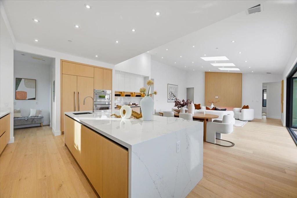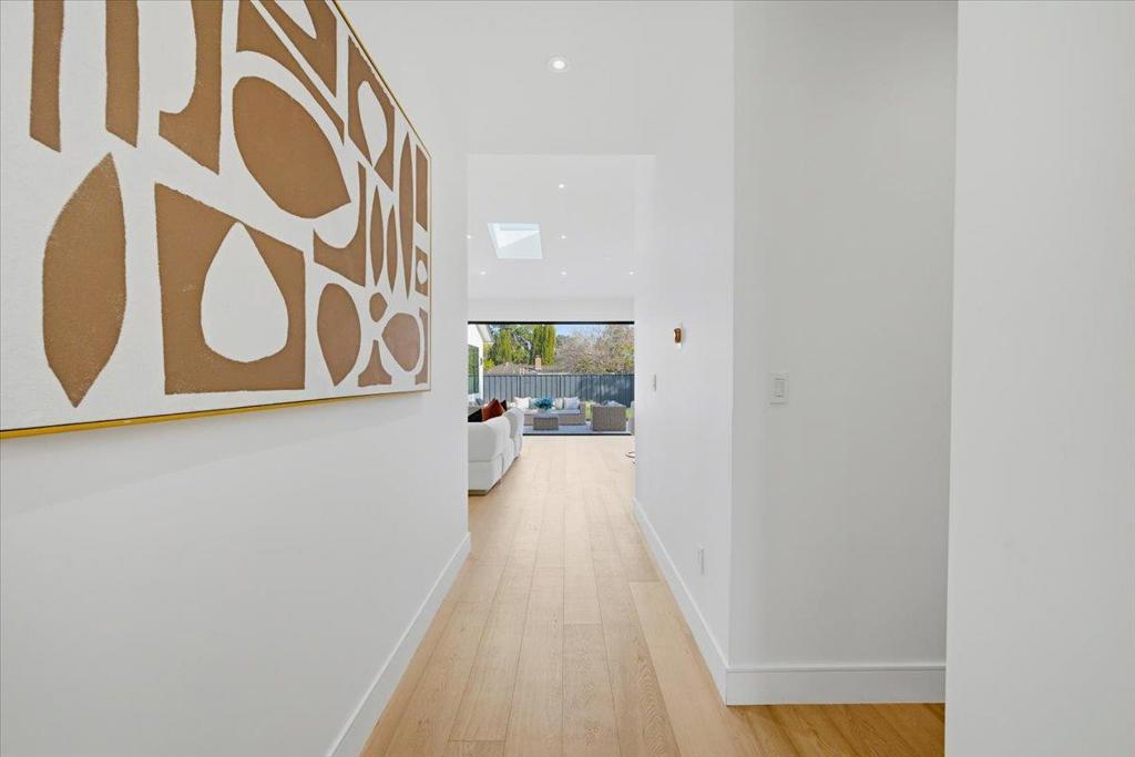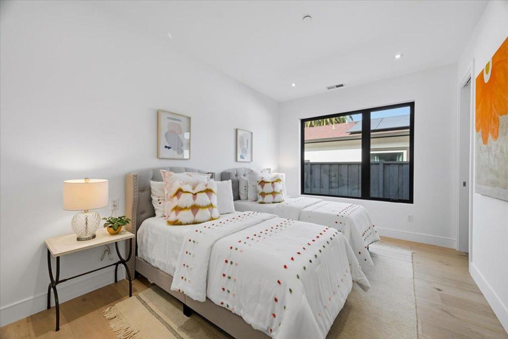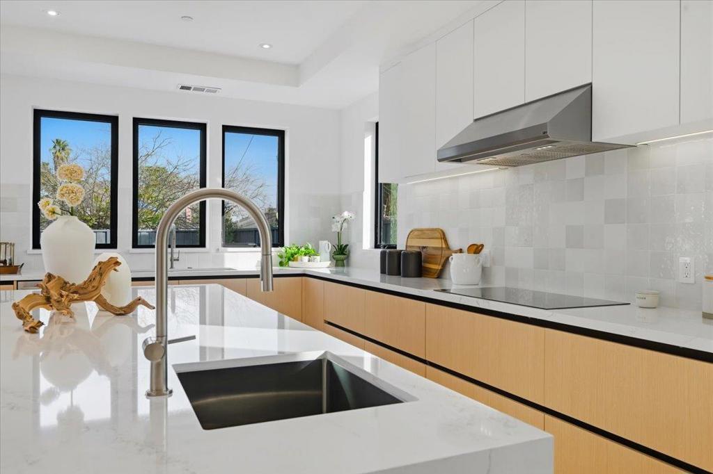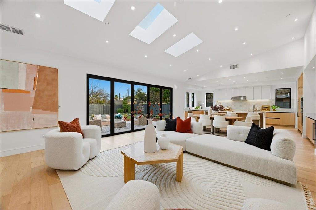 Striking modern custom home in one of Sunnyvales most desirable neighborhoods. This fully permitted custom home offers 5 bedrooms, 4.5 bathrooms, and 3,167 sq ft on a nearly 10,000 sq ft lot, rebuilt entirely with new foundation, roof, systems, and finishes throughout, including an owned solar panel system designed to power the entire property. Highlights include a bright open layout with vaulted ceilings and skylights, a La Cantina folding door for seamless indoor-outdoor living, and a chef's kitchen featuring high-end Thermador appliances, European cabinetry, and a built-in refrigerator and a wine cooler. Premium features continue with white oak engineered flooring, Porcelanosa designer tilework, Marvin windows, and a spa-like primary suite with backyard access, plus three private guest suites. The front and backyard are thoughtfully landscaped in a garden-style setting, ideal for both relaxation and entertaining, complemented by a high-efficiency Bryant heat pump system. An exceptional opportunity combining modern design, generous lot size, and a prime Sunnyvale location.