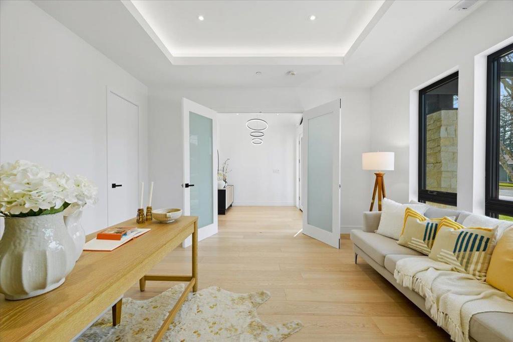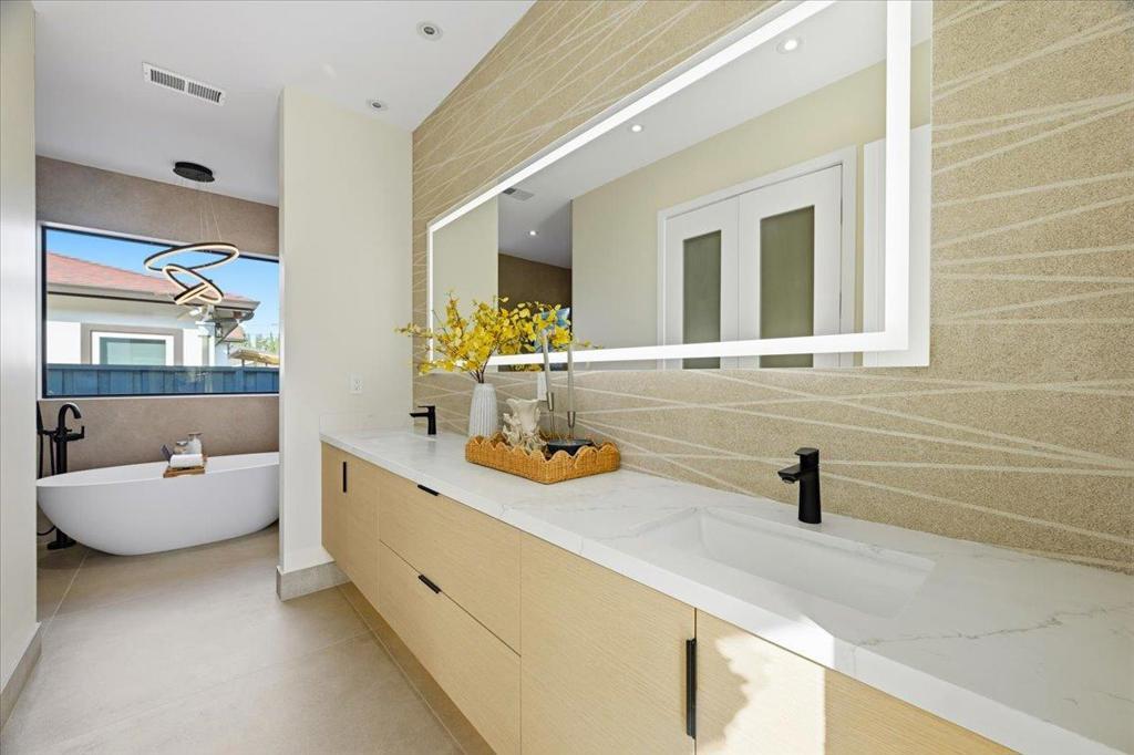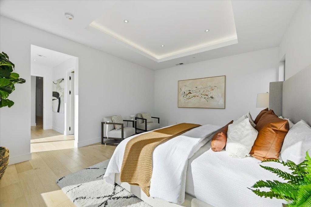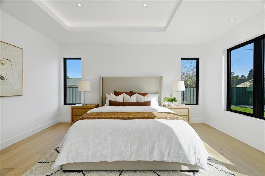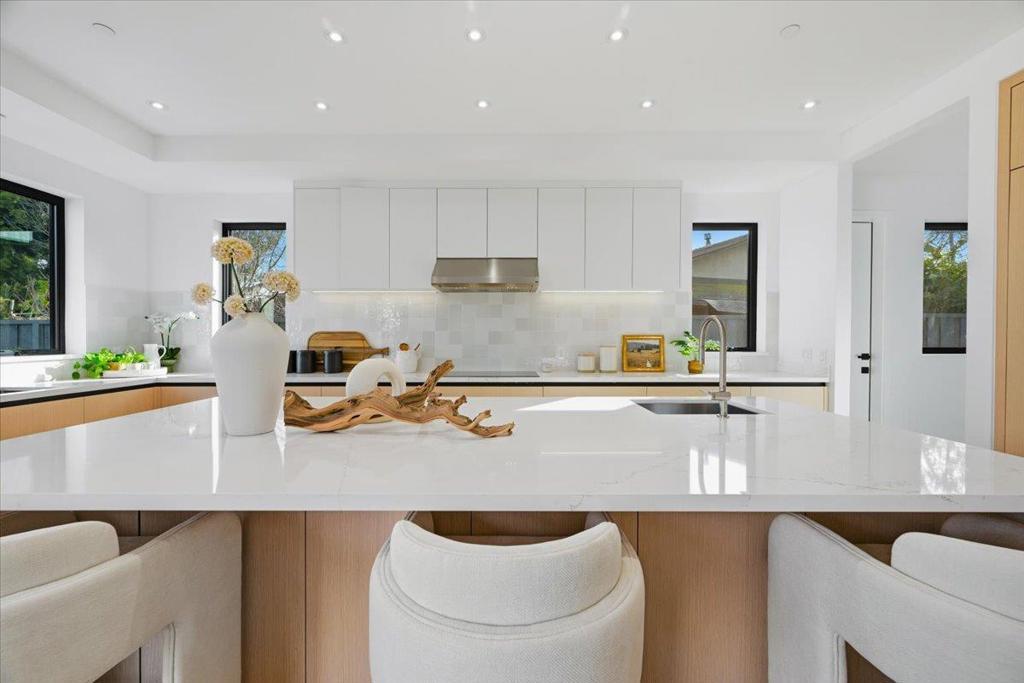 Striking modern custom home in one of Sunnyvales most desirable neighborhoods. This fully permitted custom home offers 5 bedrooms, 4.5 bathrooms, and 3,167 sq ft on a nearly 10,000 sq ft lot, rebuilt entirely with new foundation, roof, systems, and finishes throughout, including an owned solar panel system designed to power the entire property. Highlights include a bright open layout with vaulted ceilings and skylights, a La Cantina folding door for seamless indoor-outdoor living, and a chef's kitchen featuring high-end Thermador appliances, European cabinetry, and a built-in refrigerator and a wine cooler. Premium features continue with white oak engineered flooring, Porcelanosa designer tilework, Marvin windows, and a spa-like primary suite with backyard access, plus three private guest suites. The front and backyard are thoughtfully landscaped in a garden-style setting, ideal for both relaxation and entertaining, complemented by a high-efficiency Bryant heat pump system. An exceptional opportunity combining modern design, generous lot size, and a prime Sunnyvale location.