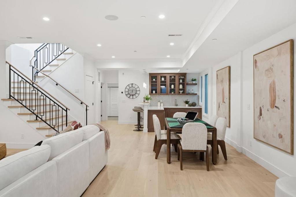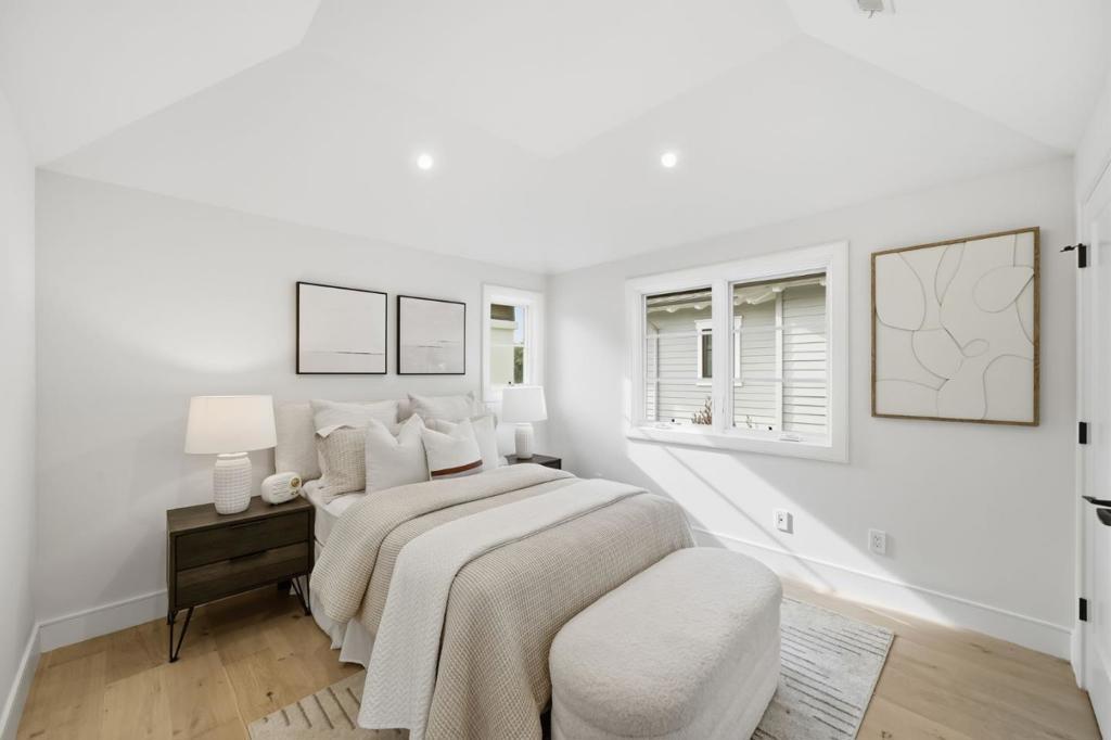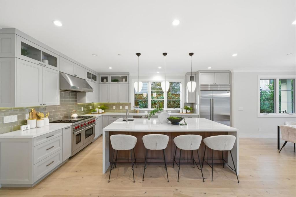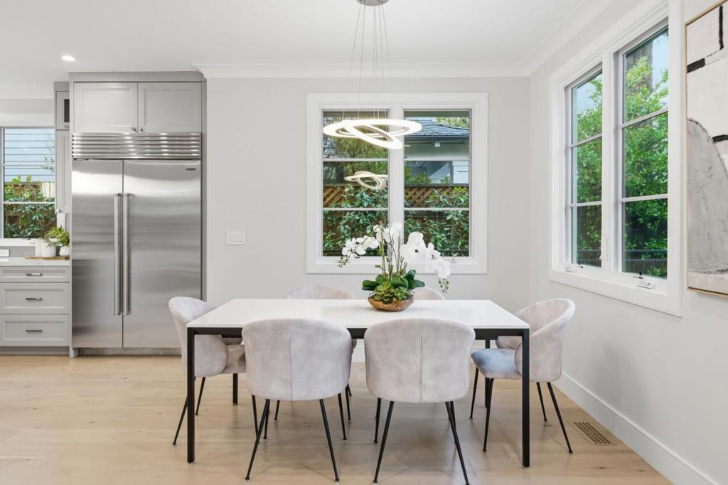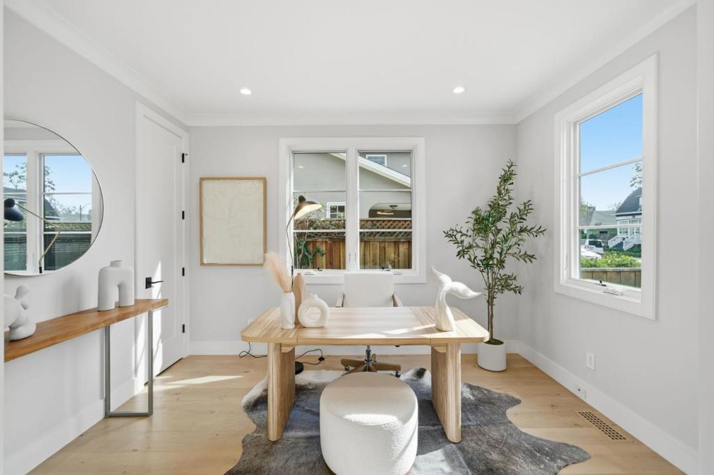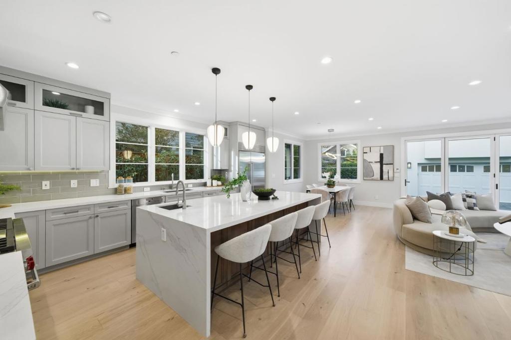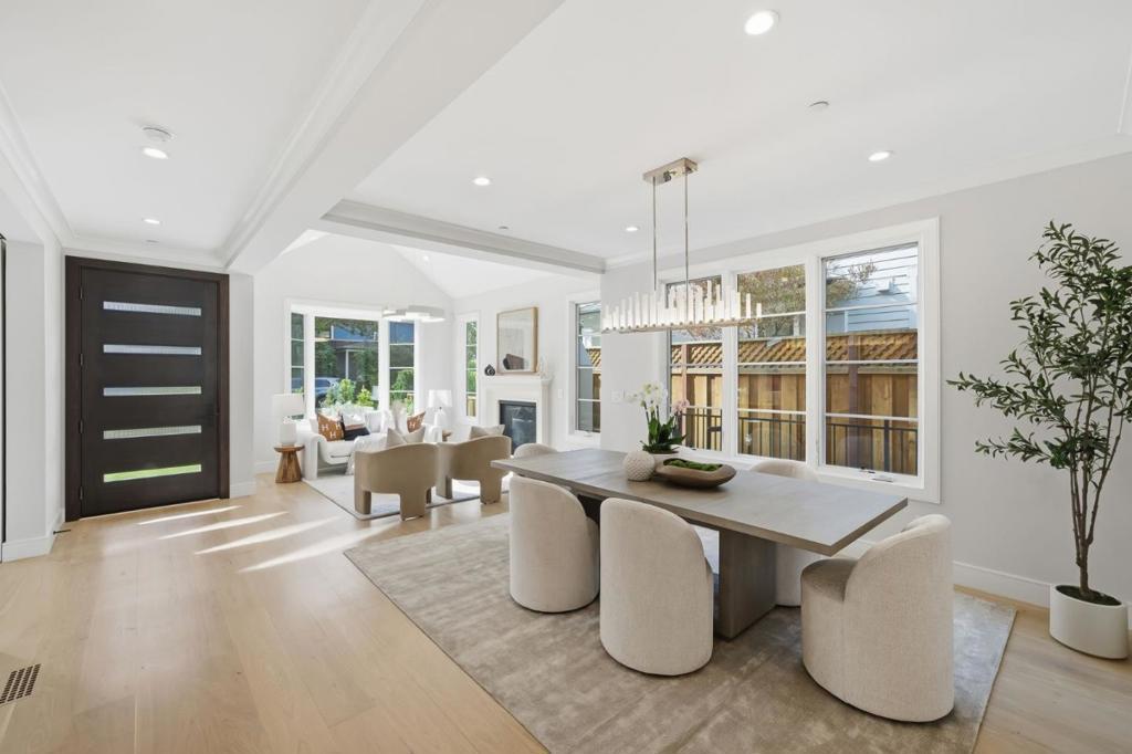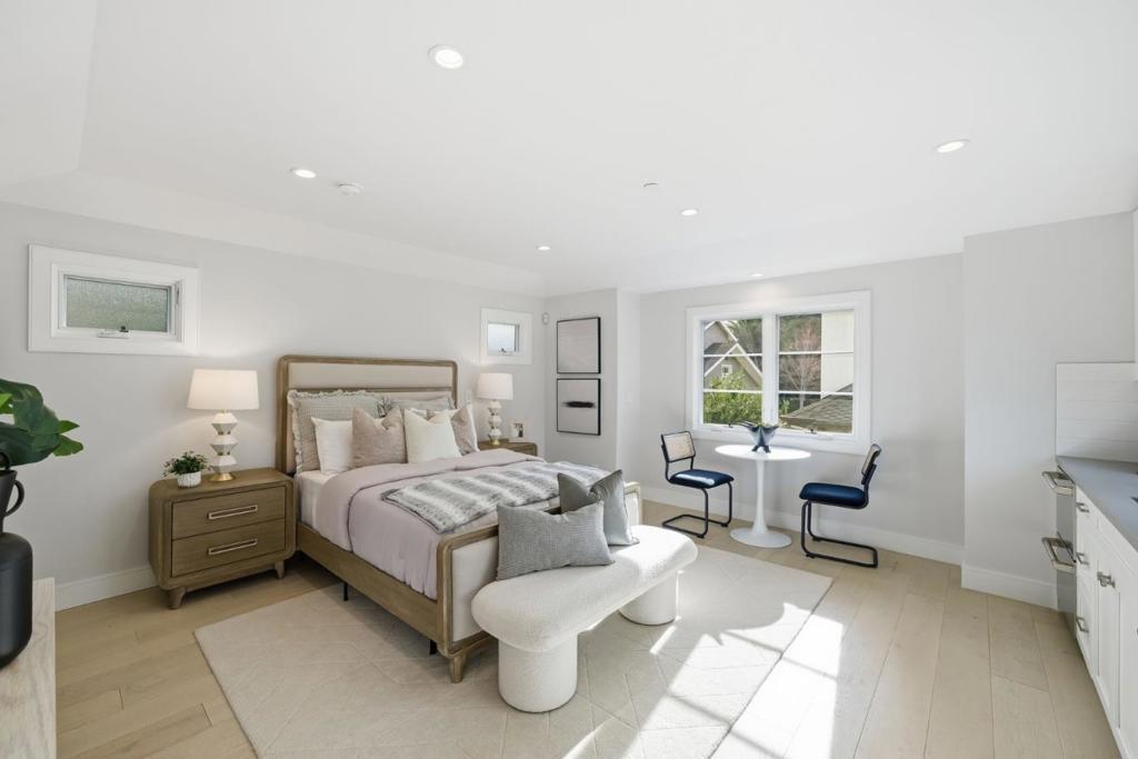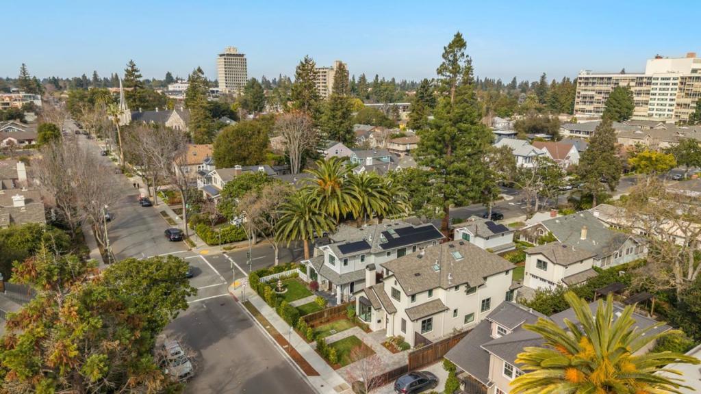 Stunning contemporary home with English cottage inspiration on a premier street in downtown Palo Alto. This artistic, light-filled residence features a flowing floor plan with soaring ceilings and premium finishes throughout. The main level offers a grand living/dining area, a spacious family room, and a gourmet kitchen with Sub-Zero/Wolf appliances and custom cabinetry. The versatile layout includes 3 en suite bedrooms on the second floor, a main-level bedroom/office with a full bath, and a lower-level guest suite. The lower level also boasts an oversized entertainment area with a custom wine cellar and wet bar. Above the detached 2-car garage is a separate, private studio with a full bathideal for guests or a quiet workspace. Enjoy unparalleled proximity to Heritage Park, cultural amenities, downtown shops and restaurants. Easy access to Stanford campus, top-rated Palo Alto Unified Schools. An urban sanctuary in the heart of Silicon Valley.