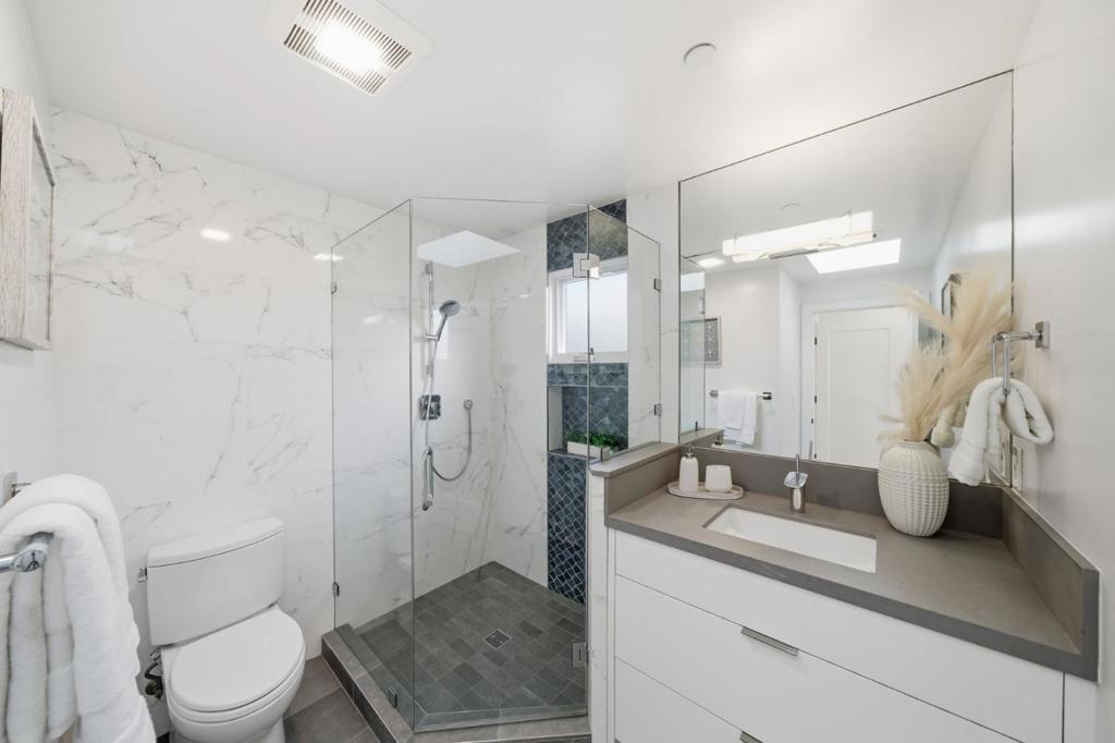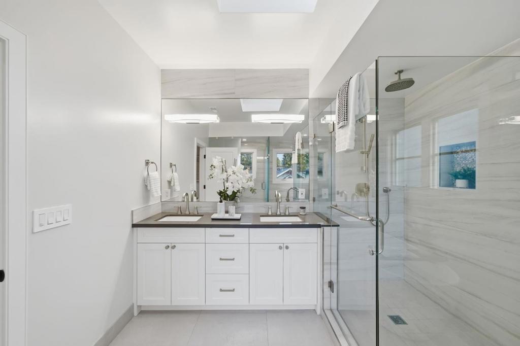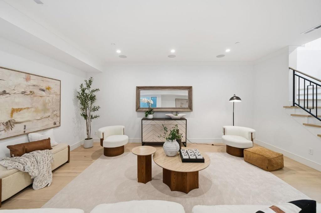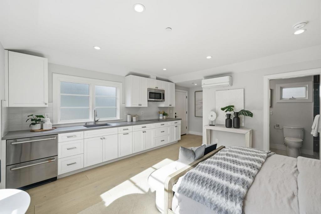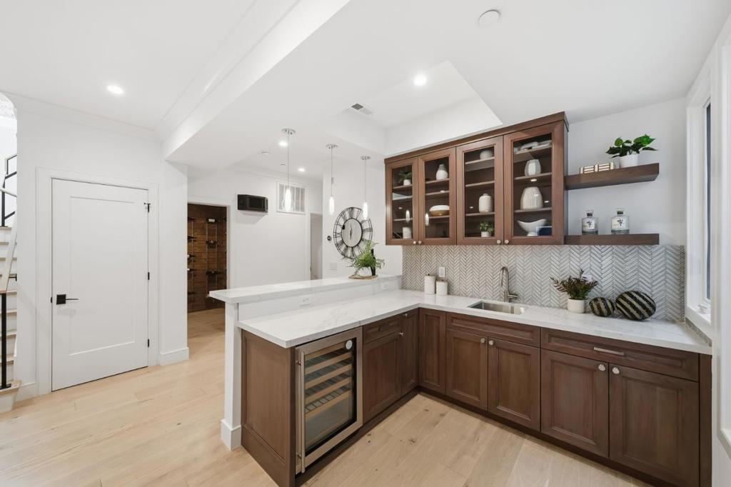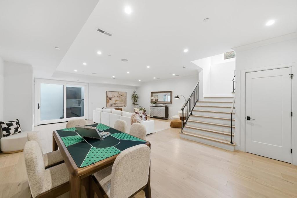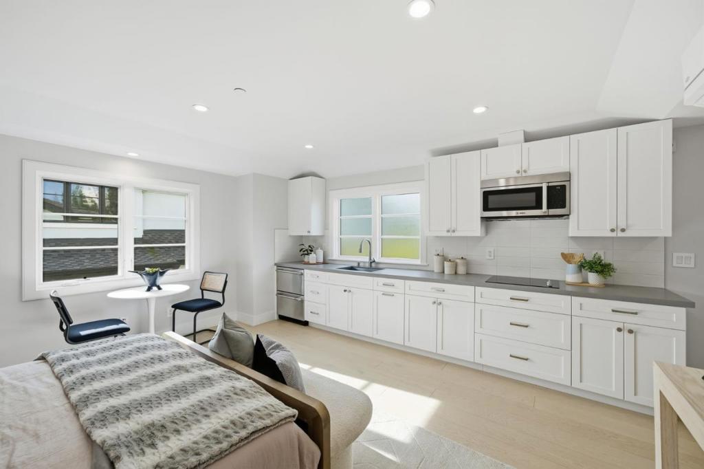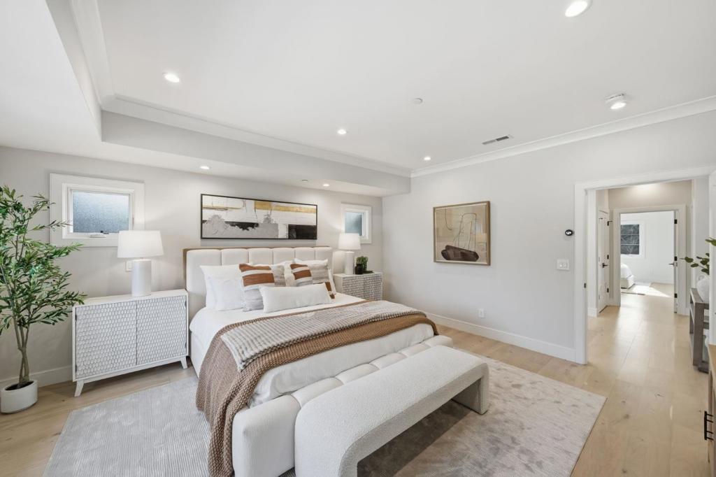 Stunning contemporary home with English cottage inspiration on a premier street in downtown Palo Alto. This artistic, light-filled residence features a flowing floor plan with soaring ceilings and premium finishes throughout. The main level offers a grand living/dining area, a spacious family room, and a gourmet kitchen with Sub-Zero/Wolf appliances and custom cabinetry. The versatile layout includes 3 en suite bedrooms on the second floor, a main-level bedroom/office with a full bath, and a lower-level guest suite. The lower level also boasts an oversized entertainment area with a custom wine cellar and wet bar. Above the detached 2-car garage is a separate, private studio with a full bathideal for guests or a quiet workspace. Enjoy unparalleled proximity to Heritage Park, cultural amenities, downtown shops and restaurants. Easy access to Stanford campus, top-rated Palo Alto Unified Schools. An urban sanctuary in the heart of Silicon Valley.