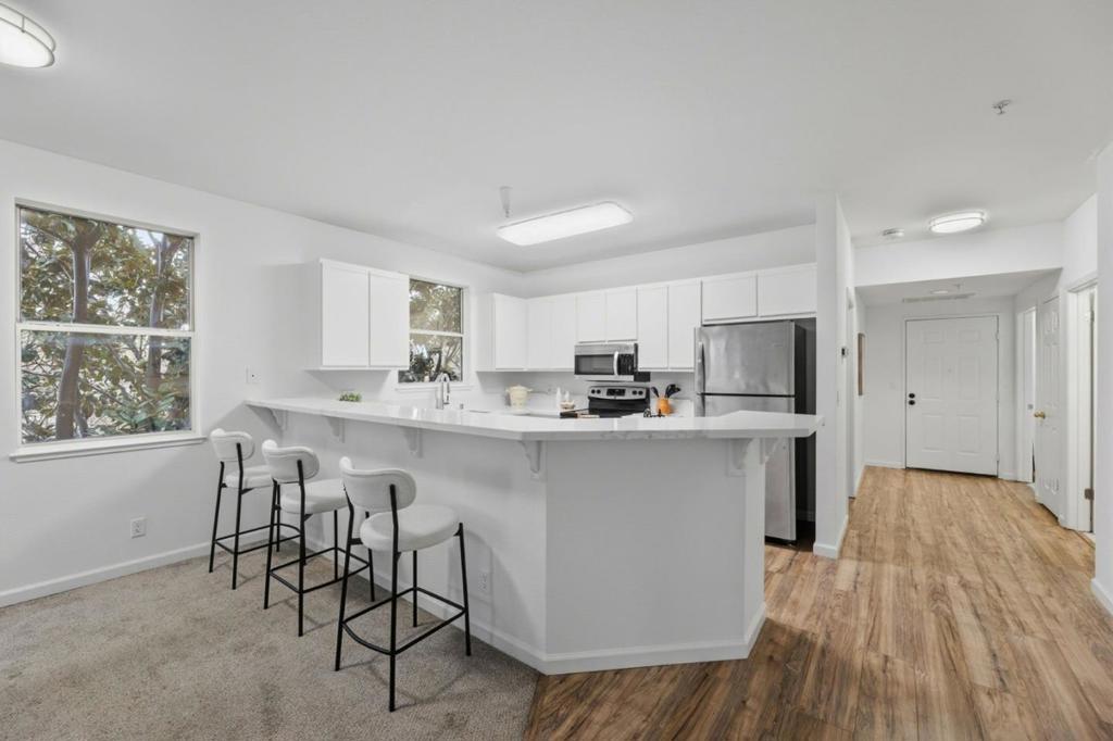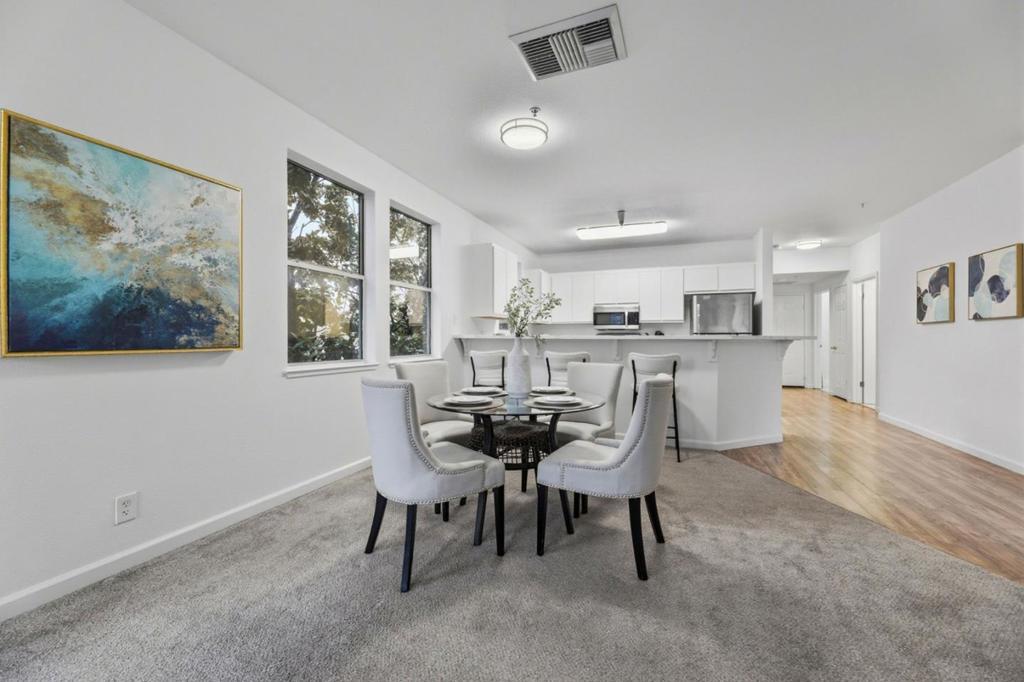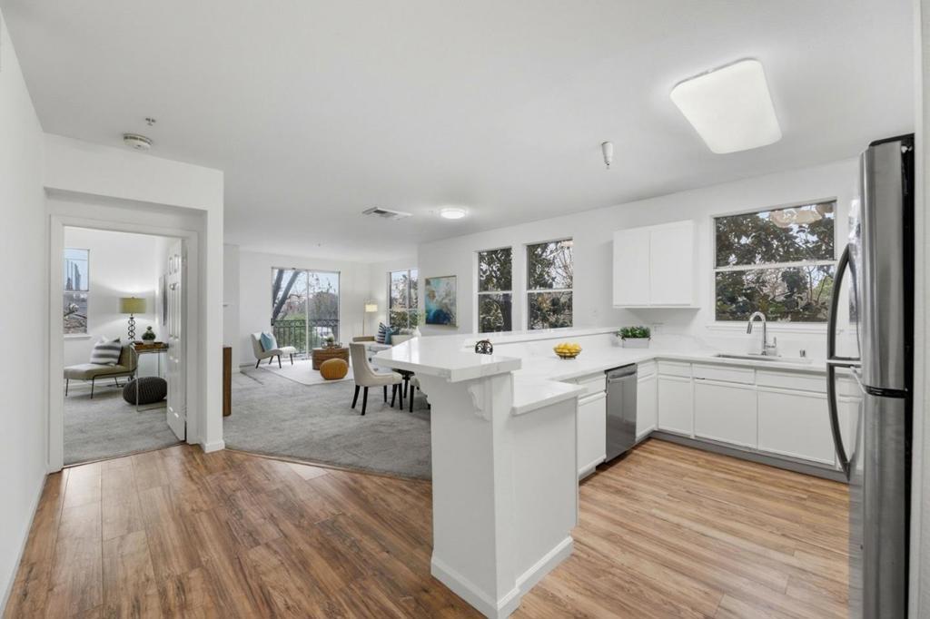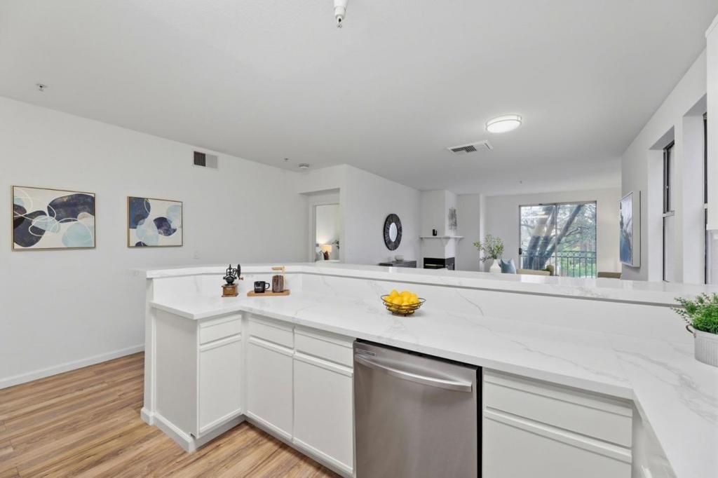 Welcome to this beautiful 2-bedroom, 2-bath condo in a gated community in the heart of Downtown San Jose. This second-floor end unit offers an open, light-filled floor plan with newer flooring throughout, fresh interior paint, and a spacious separate laundry room. The updated kitchen features quartz countertops, a new sink and faucet, and a brand-new dishwasher; opens to the dining area and large living room; ideal for entertaining and highlighted by a charming wood-burning fireplace. The primary bedroom includes an en-suite bath, while a private balcony is perfect for morning coffee or growing your favorite herbs. New window screens throughout. Includes one reserved parking space in the secured underground garage. Conveniently located near major commute routes, tech companies, Downtown San Jose, CEFCU Stadium and just minutes from San Jose State University, and less than two miles from the proposed Google San Jose campus.