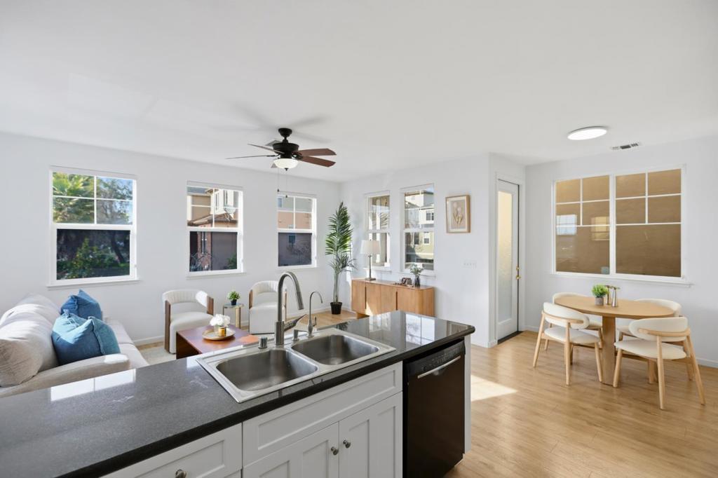 Welcome to this stunning Trinity Park SFH in one of Alivso's best community, seamlessly blends modern comfort with prime access to Santa Clara/ North San Jose. The home features a spacious kitchen equipped with a gas cooktop, granite countertops, dishwasher, hood over range, oven range, pantry, and refrigerator perfect for culinary enthusiasts. The dining area is conveniently situated in the family room, while a separate family room ensures ample space for relaxation. The home offers vinyl/linoleum flooring throughout, adding to its low-maintenance charm. making it ideal for gathering with loved ones. The primary bedroom includes a walk-in closet and an ensuite bathroom with double sinks and a tub. Practical amenities include central AC, central forced air gas heating, and in-house laundry facilities with a washer and dryer located in the utility room.A two-car garage offers plenty of storage space, and Low HOA fees, easy access to Highways 237/880/101, serene Alviso Marina County Park, shopping, and dining.