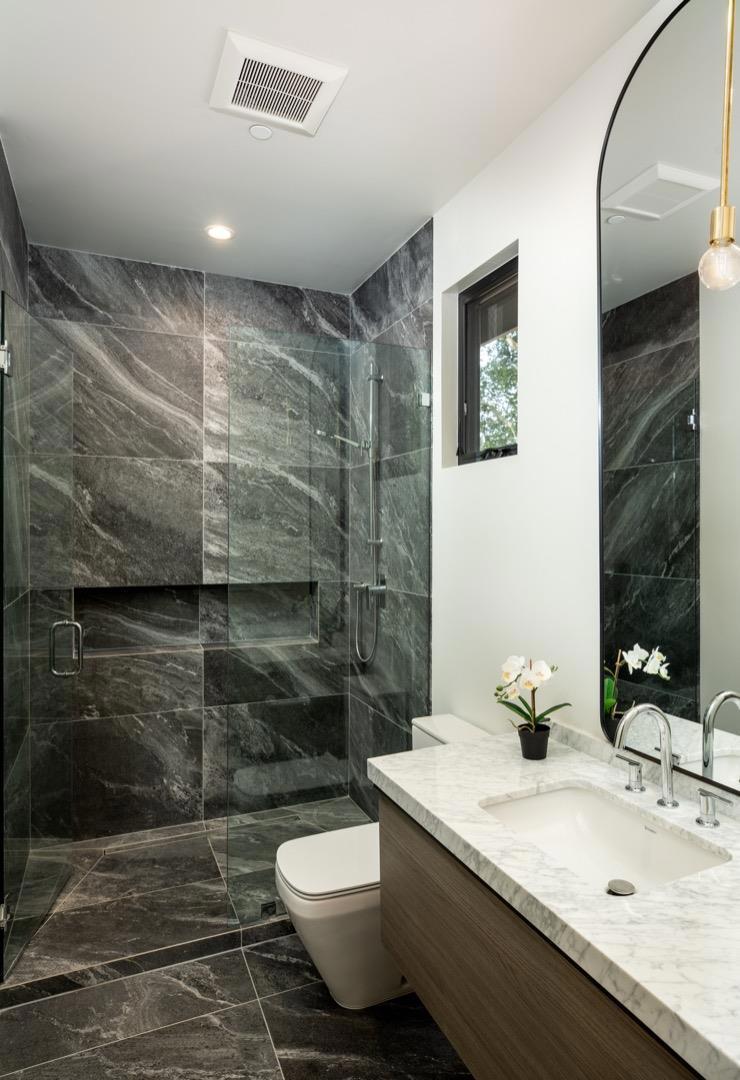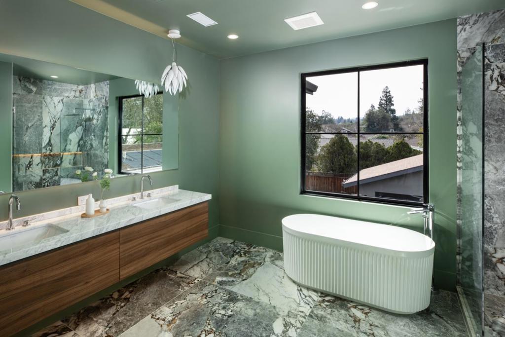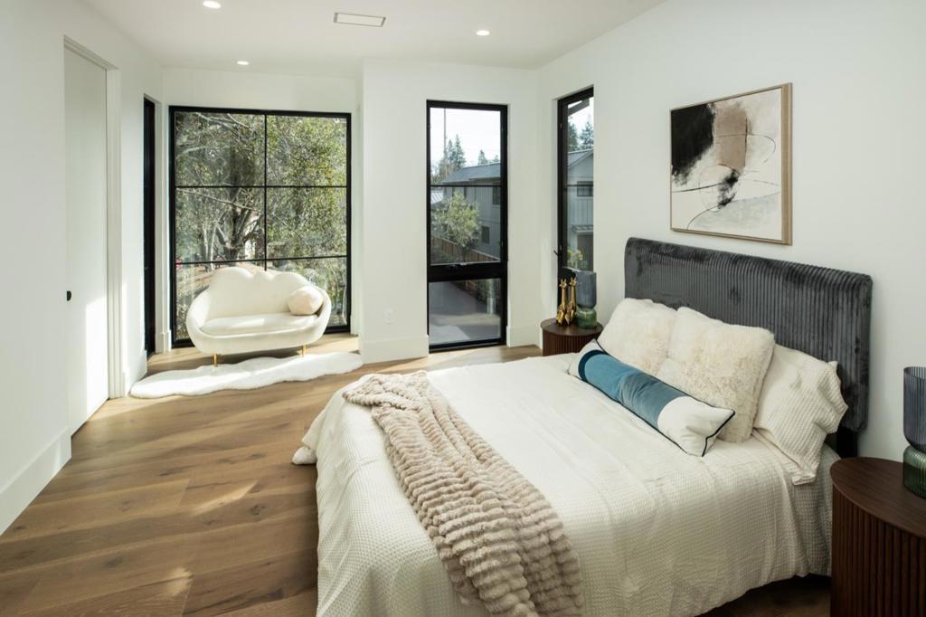 Striking new construction residence blends clean architectural lines with organic warmth and a refined, natural palette. Set back behind a long gated driveway, the home is filled with natural light and expansive walls of glass and custom lighting. Public spaces flow seamlessly, beginning with a formal living room featuring and an elevated linear fireplace. The formal dining area and sleek open concept kitchen showcases concealed Gaggenau appliances, and Amarula marble with built in casual dining area. Impressive family room features a skylit vaulted ceiling, linear fireplace, and stacking glass doors to the rear deck, plus adjacent multi-use room and dedicated office. Upstairs, the tranquil primary suite offers a sitting area and refreshment bar, customized walk-in closet, and spa-inspired bath Three additional en-suite bedrooms continue the same elevated level of finish. An attached one-bedroom ADU (included in 5,110sq ft) with private entrance provides flexible options. The rear yard features an expansive deck, privacy hedges, and low-maintenance synthetic lawn. Additional highlights include white oak floors, detached two-car garage, solar power, programmable lighting, multi-zone climate control, in a convenient location near downtown, Stanford University, and top schools.