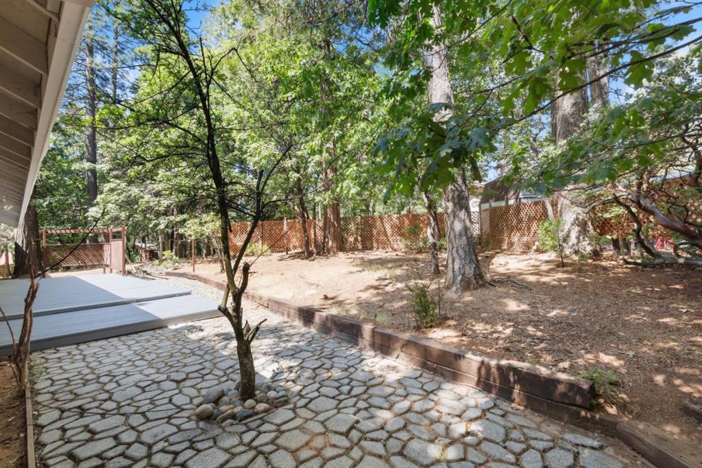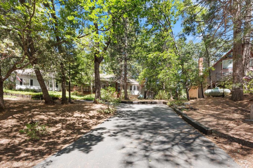 Escape to the charm of Cedar Ridge with this beautifully cared for single story mountain retreat, where comfort meets the beauty of the Sierra foothills. This property includes TWO PARCELS, the main residence plus an adjacent 0.25 acre lot APN 080-270 023-000 included in the sale, for a total of approximately 0.56 acres, offering added space, privacy, or future potential. The home features 3 bedrooms, 2 bathrooms plus a urinal in the garage, and 1,780 sqft of living space. Inside, enjoy vaulted ceilings and five skylights that fill the home with natural light. The open layout allows the kitchen to overlook the living room, ideal for everyday living and entertaining. Large windows capture peaceful views of surrounding greenery. Step outside to a private deck wired for a jacuzzi, perfect for relaxing evenings. The primary suite offers a cedar lined walk in closet and dual sinks. An attached two car garage adds convenience. Enjoy a short walk to a nearby water trail and exclusive private access to Dogwood Lake. Whether as a full time residence or weekend getaway, this single level home with an included adjacent parcel offers a rare opportunity to enjoy mountain living with extra land.