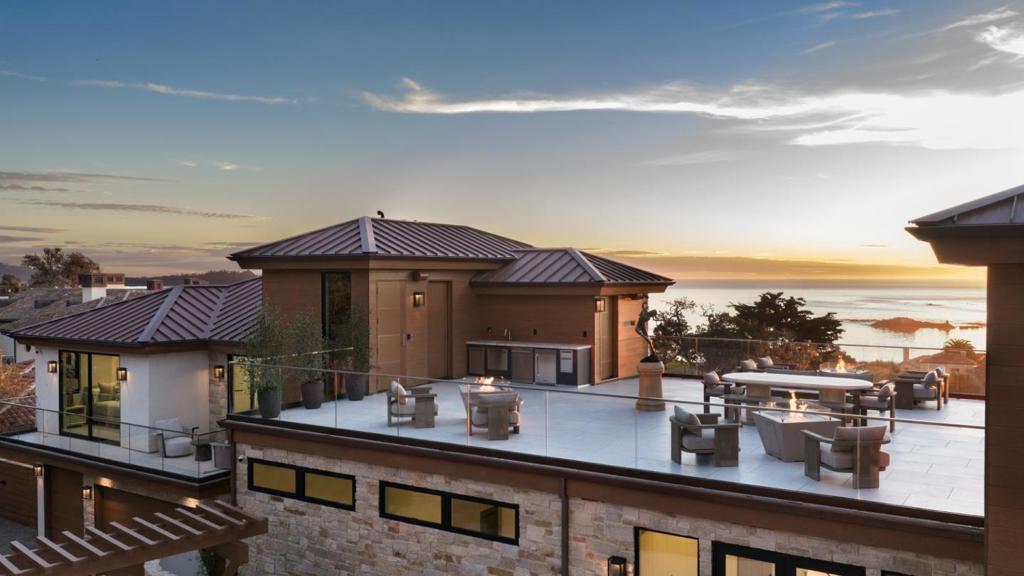 Commanding one of the most revered and tightly held vantage points along 17 Mile Drive, this newly constructed estate occupies a generational position overlooking the iconic 14th hole of Pebble Beach Golf Links, with the Pacific Ocean beyond. Defined not simply by view but by absolute placement, opportunities of this caliber are exceptionally rare. The residence is modern yet timeless - an architectural expression of confidence, precision, and restraint. Designed for legacy ownership, the home prioritizes main-level living, with principal spaces opening to expansive terraces that create a seamless relationship between interior and horizon. Uninterrupted golf course and ocean vistas reinforce the home's singular connection to its setting. Every element has been executed to the highest standard, with uncompromising attention to craftsmanship and longevity. Spacious yet intimate, the home balances grand-scale entertaining with moments of quiet retreat. Crowning the estate is a rooftop pavilion, served by dual elevators, offering panoramic coastal views and an outdoor entertaining kitchen - an elevated sanctuary that establishes a rare sense of authority. Defined by position, discretion, and permanence, this is a singular offering along one of the world's most iconic coastlines.