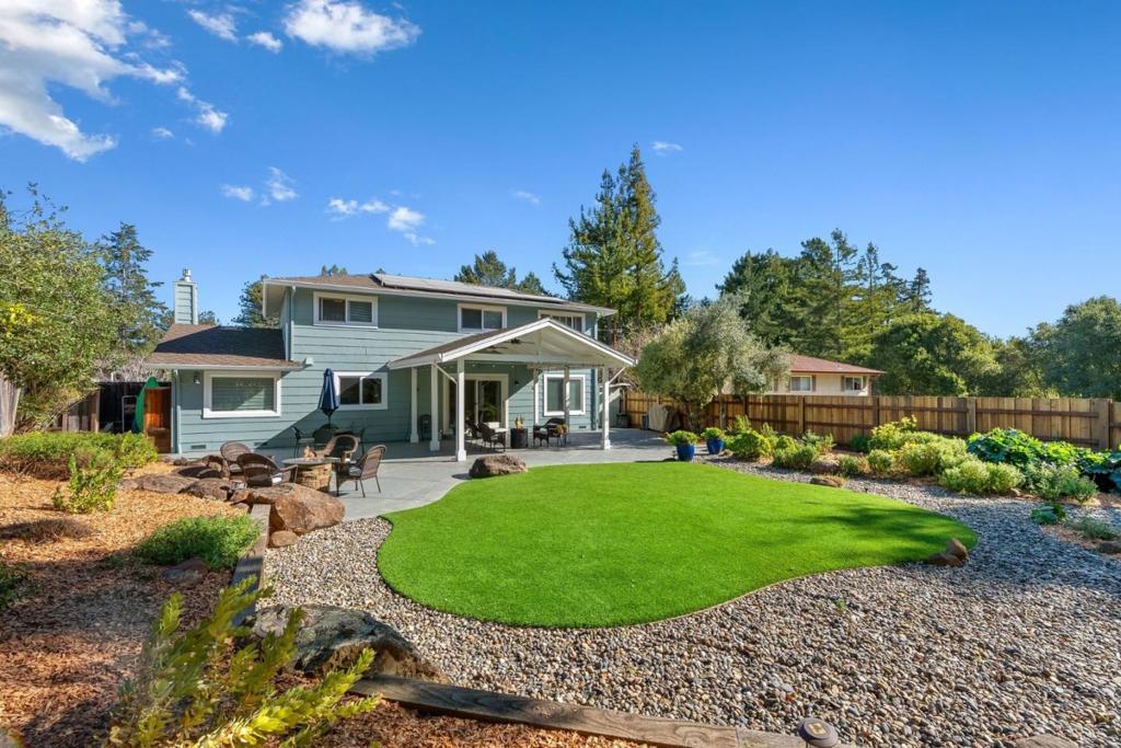 Located in the highly sought-after Vienna Woods community of Aptos, 1699 Cheryl Way offers a rare blend of space, privacy, and indoor-outdoor living, just minutes from Nisene Marks State Park, Seacliff State Beach, and the conveniences of Aptos and Soquel. This well-designed home features four bedrooms upstairs, two full bathrooms, and a convenient half bath on the main level. The spacious living room with a cozy fireplace flows into the formal dining area and large kitchen, which opens seamlessly to the family/media roomcreating an ideal layout for everyday living and entertaining. The kitchen offers abundant storage and a breakfast bar. Outdoors, the recently updated hardscape provides a low-maintenance retreat with turf, low-water landscaping, and a pergola, perfect for gatherings, play, or quiet relaxation, with privacy and peaceful tree-lined views beyond the backyard. Additional highlights include room for boat or RV storage and solar panels for added efficiency. Set in a welcoming neighborhood close to shopping, dining, and the Cabrillo College Farmers Market, this home captures the best of Santa Cruz living.