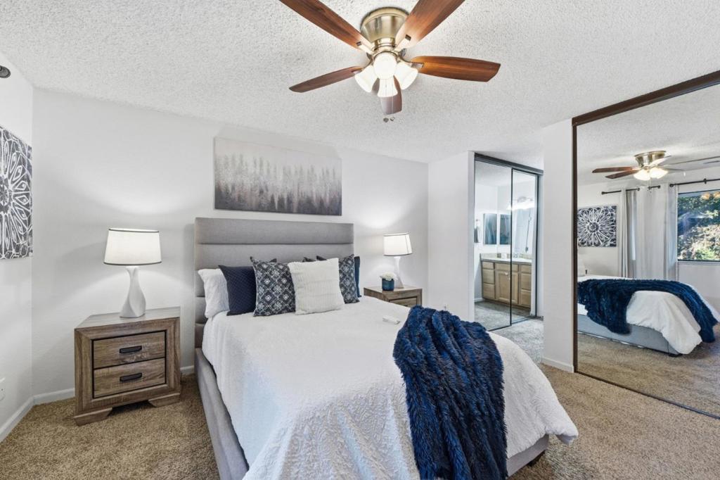 Seller very motivated house is beautifully staged ,willing to pay $10,000, towards closing costs or buy down of loan interest rate plus 6 months of HOA Dues Primer location upstairs end unit overlooking the pool. Spacious bright/open feeling, vaulted ceiling in living room with natural light streaming into unit. Looking out your windows and deck view mature landscaping, updated 2 bedrooms, 2 bath, Kitchen and bathroom 8 years new, inside laundry with washer/dryer included, wood burning fireplace in living room, master bedroom is large with two closets. Terrace Villas is like its own little village with beautiful landscaping to enjoy on your daily walks, conveniently located near "The Village Oaks Shopping", easy access to Hwy 85,101 and hospital. Perfect home for your first time buyer, or young family or empty nester...