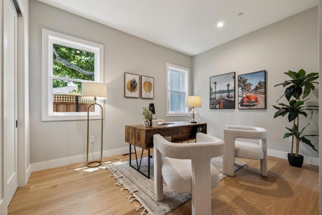 Welcome to this spectacular upscale home in a desirable Cambrian neighborhood with excellent schools. This stunning two-story residence offers 6 bedrooms and 4.5 baths, designed for elegant entertaining and comfortable everyday living. Exceptional craftsmanship is evident throughout the floor plan, featuring a formal dining room with French doors, a dramatic great room with soaring 20-foot ceilings, and a welcoming breakfast nook. The main level includes a guest en-suite, stylish powder room, functional mudroom with a bonus laundry area, and a butler's pantry connecting to the gourmet kitchen with premium finishes and high-end appliances. Upstairs, a versatile loft offers flexible living space. The luxurious primary suite features a spa-like bath with soaking tub, oversized shower, dual vanities, and a walk-in closet. Three additional bedrooms and an upstairs laundry room complete the level. The private backyard with a covered patio is ideal for outdoor entertaining or relaxation. Modern amenities include a fully owned solar system, multimedia panel, Nest thermostats and doorbell, EV charger pre-wiring,pre-plumbed for water filtration, and so much more. Photos are from an identical floor-plan home by the same builder that sold last year. Design finishes will vary.