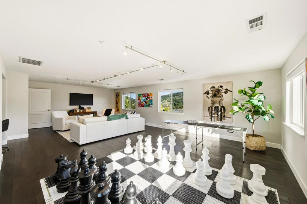 Live on your own 11 acre private estate with breathtaking views of Lexington Reservoir & the Santa Cruz Mountains, just 6 minutes from downtown with Los Gatos schools. This incredible home has undergone a transformation with over $500K of updates, offering quiet luxury with 6 spacious bedrms, including 2 on the main level, plus an office, sunroom, two large multipurpose rooms, & an oversized 4-car garage. As you enter through the double glass doors & vestibule, the sweeping staircase & dramatic chandeliers set the tone, complemented by dark oak floors, fresh interior paint, & refined hardware & lighting throughout. The chefs kitchen features black granite counters, a Thermador gas cooktop, double ovens, Sub-Zero refrigerator, dual sinks, & a large island. The primary suite captures stunning views, remote-controlled blinds, & a custom walk-in closet. Exceptional systems include a massive solar array with 6 Tesla Powerwalls - so efficient the seller has never paid an electric bill - along with dual furnaces, fire suppression, water storage tanks, whole-home filtration, security system, cameras, high-speed connectivity, & city water service. Outdoor living shines with flagstone patios, mountain vistas, gazebo, bocce ball court, & RV/boat parking. An extraordinary Los Gatos retreat!