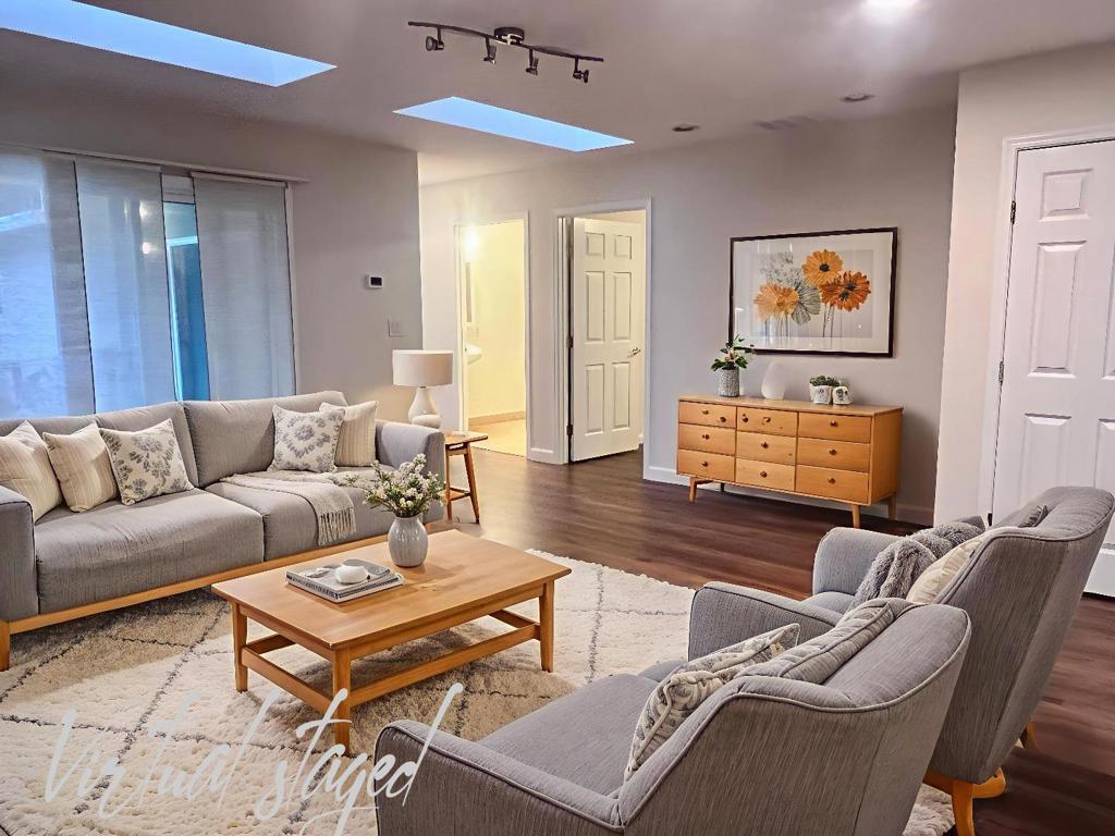 This freshly painted, spacious home offers a versatile 7-bedroom, 7-bathroom (2 full/5 half) layout with gleaming wood flooring and a seamless kitchen-to-family room flow. An extra pantry room and multiple skylights ensure the home is flooded with natural light. Modern comforts include central heating, individual room AC, a dedicated laundry area, and a detached garage with a long driveway. The property shines outdoors with a large, beautiful yard featuring a private orchard of lemon, orange, and kumquat trees, framed by an amazing passion fruit vine fence. Located in the excellent Mountain View Whisman School District and serving top-rated Los Altos High School, this home offers an easy commute for both shopping and work. Prefer no pets, and rent includes gardening service.
