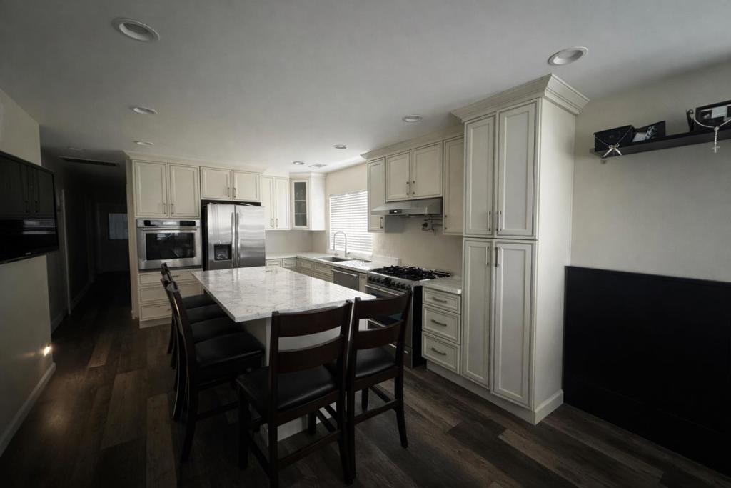 Discover a rare opportunity in the heart of San Jose. This 1,632 sq ft residence offers a unique combination of modern comfort and exceptional versatility. The main home features three spacious bedrooms and three full bathrooms, anchored by a chef's kitchen designed for high-end cooking. Culinary enthusiasts will appreciate the granite countertops, commercial-grade range with a wall-mounted pot filler, and sleek stainless appliances. Durable tile and luxury vinyl plank flooring flow throughout for easy maintenance. The property's true value lies in its additional living spaces and flexible commercial/residential zoning. A fully finished basement provides its own private entrance, kitchen, and bathroom, perfect for guests or extended family. Additionally, the rear of the property includes a converted garage with four bonus rooms totaling over 400 sq ft, plus a secondary finished area of approximately 350 sq ft. This larger space includes its own sink, cabinetry, and bathroom, making it an ideal candidate for a home office, gym, or workshop. With central AC, an EV Level 2 hookup, and a location next to 101/280/680, near SJSU, and future BART station nearby. Buyer is advised to conduct their own due diligence regarding the potential for future conversions and permits. Sold as-is.