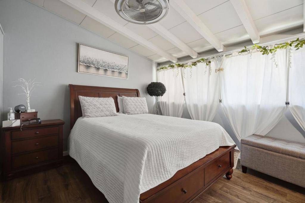 Wonderful single-level home in desirable Lakewood Village featuring 3 bedrooms and 3 bathrooms with a bright, open floor plan designed for easy living. Large windows fill the home with natural light, creating a warm and inviting atmosphere throughout. The low-maintenance backyard offers the perfect space for relaxing or entertaining, complete with additional storage for convenience. The garage has been thoughtfully converted into bonus living space and includes a third bathroom, ideal for a home office, guest suite, gym, or flex space to fit your needs. Located just minutes from parks, shopping, dining, and major tech campuses, this home combines comfort, functionality, and an unbeatable location.