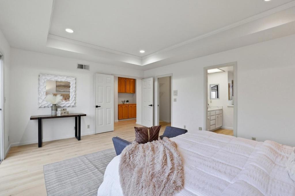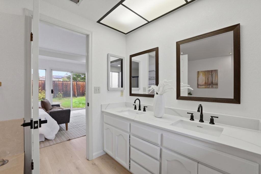 Recent updates are showcased in this 3 bedroom, 2 bathroom home offering 1,827 sq ft of comfortable living space on a 5,985 sq ft lot. The kitchen features new quartz countertops, a new cooktop & refrigerator, updated backsplash, sink, faucet, & cabinet hardware. A tray ceiling adds subtle character, & the eat-in layout includes a slider to the atrium. The living room is filled with natural light & features a vaulted ceiling, recessed lighting, & a fireplace with mantel. The dining area includes a built-in cabinet topped with new quartz, along with a wine refrigerator, while a large slider opens to a private atrium. The spacious primary bedroom offers a peaceful retreat with a tray ceiling, walk-in closet, & a slider leading directly to the backyard. The primary bathroom features a new countertop & faucet, dual sinks, a walk-in shower, & a separate soaking tub. Two additional bedrooms are well sized, including one with three windows that bring in abundant natural light. The hall bathroom has been updated with a new toilet & faucet & includes a shower over tub. Freshly painted interiors, new laminate flooring, & new baseboards run throughout the home. Enjoy access to the community pool. Assigned to highly rated Williams Elementary, Bret Harte Middle School, & Leland High School.