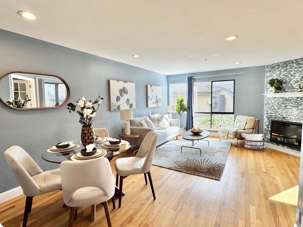 Welcome to this charming 2-bedroom, 1-bathroom home situated in the vibrant city of Fremont. With 844 sq. ft. of living space, this residence offers a cozy and functional layout. The kitchen is well-equipped with modern appliances including an electric cooktop, dishwasher, garbage disposal, and refrigerator, making meal preparation a breeze. Enjoy meals at the break-fast bar or in the dining area conveniently located within the living room. The home features beautiful wood flooring throughout, adding warmth and elegance to the space. Stay comfortable year-round with the window/wall unit cooling and both baseboard and forced air heating systems. The inviting living area is complemented by a fireplace, perfect for cozy evenings. Laundry is made easy with the in-unit washer and dryer, along with a 220V electricity hookup. An attached garage provides parking and additional storage space, making this home a practical choice. Don't miss the opportunity to make this delightful Fremont home your own! ***Please call/text 408-649-6498 for questions***
