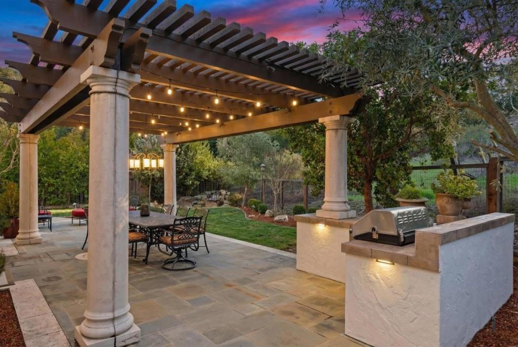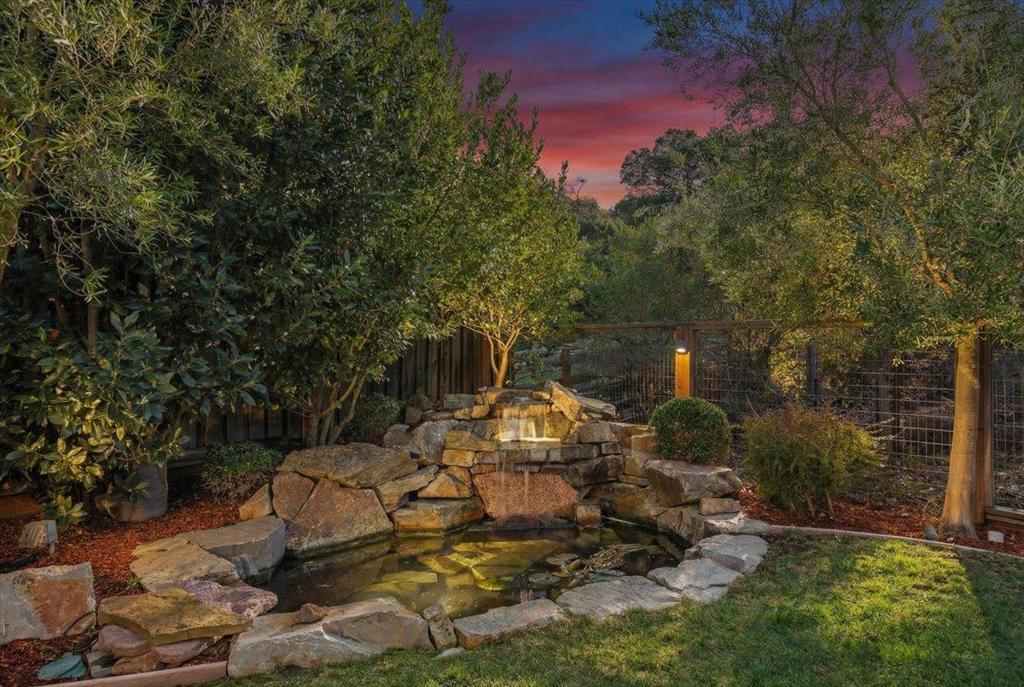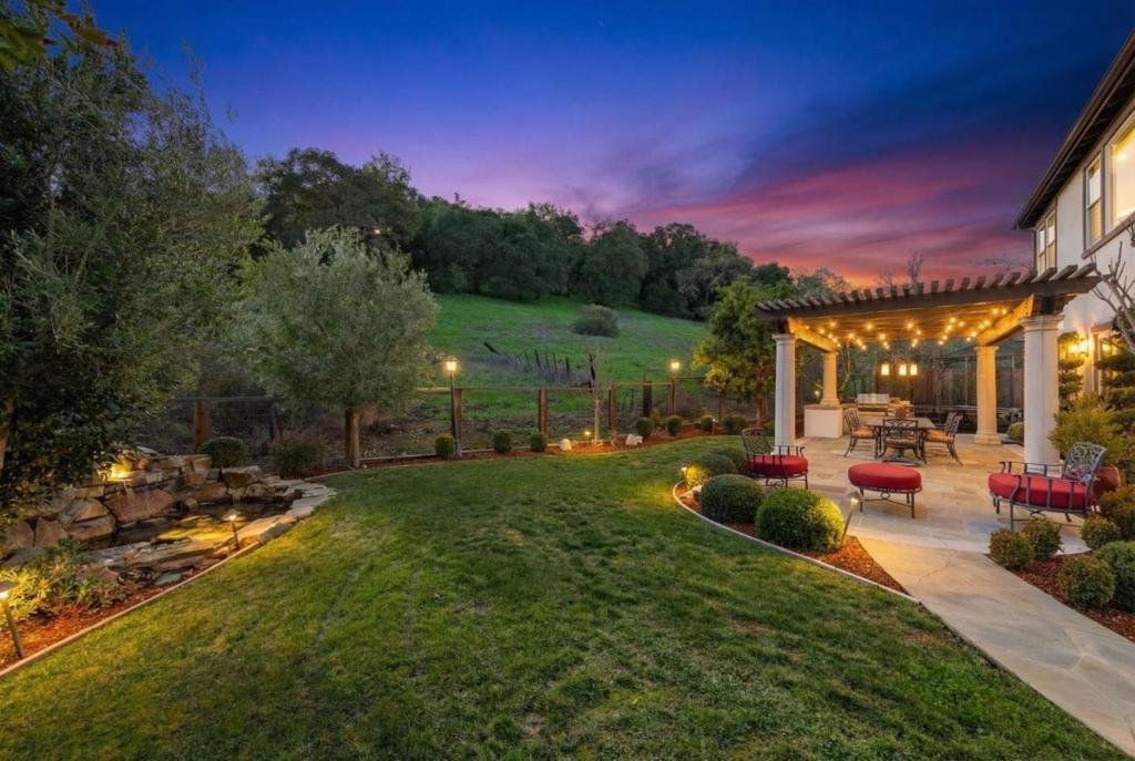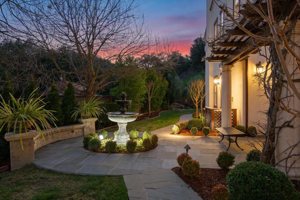 This exceptional Summerhill home is on the best lot in the neighborhood, set back from the street, overlooking the beautiful Quicksilver County Park! Blending refined luxury in a private setting, the expansive layout includes a formal living room with silk designer curtains, a formal dining room with a gorgeous French Empire-style chandelier, an open concept kitchen/family room, and a bonus room upstairs. The kitchen is an entertainer's delight with stainless steel, Wolf, Subzero, and Bosch appliances, large island with prep sink, walk-in pantry, butler's pantry with wine fridge and sink. Built-in sound system and outdoor speakers create enjoyable ambiance throughout. The separated primary suite, provides the perfect retreat to unwind with a gas fireplace and seating area. The large ensuite includes a soaking tub and two spacious walk-in closets. Three additional bedrooms with walk-in closets and ensuite bathrooms. Enjoy a peaceful cup of coffee in the sunny, outdoor courtyard with a tranquil fountain. Store your vintage car in the tandem 3rd space in the impressive garage. Owned solar panels and an EV charger provide energy efficiency. A perfect setting that feels worlds away yet remains close to all the conveniences, amenities, and great schools that Almaden Valley offers.