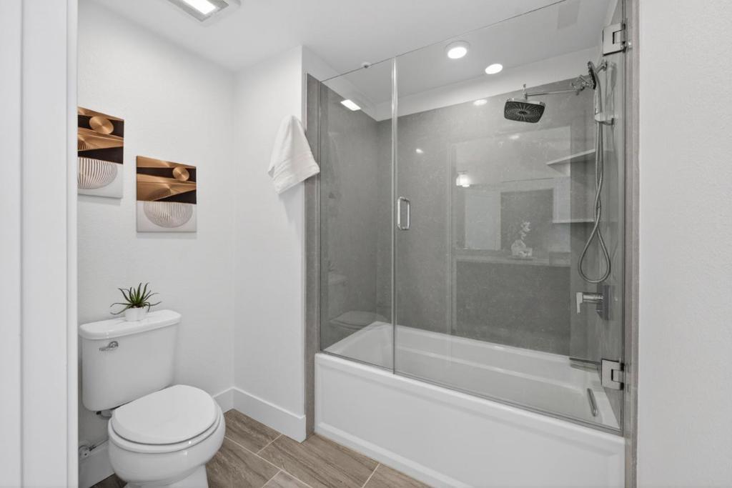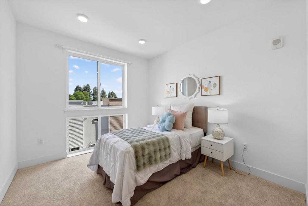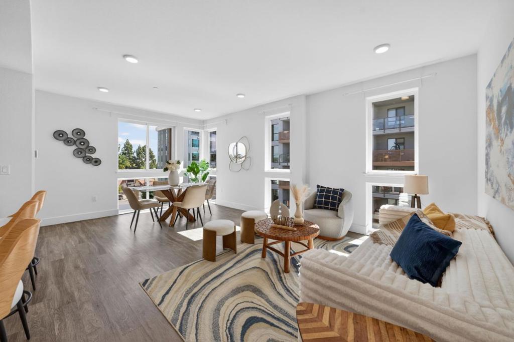 Unbeatable Location! Built in 2021, this luxurious condo is perfectly situated in the heart of Fremont and offers a sleek, modern single-level design. This corner unit features soaring ceilings and expansive floor-to-ceiling windows that fill the home with natural light. Fresh interior paint enhances the bright, open-concept layout, creating an inviting space ideal for both everyday living and entertaining.The stylish kitchen boasts a large center island, stainless-steel appliances, and abundant storage. The spacious living room is highlighted by extra-tall windows. The primary suite enjoys the same abundance of light, along with a walk-in closet and an oversized spa-inspired bathroom. Two additional bedrooms are thoughtfully located away from the primary suite for added privacy, along with a second full bathroom and convenient in-unit laundry. Additional highlights include two secured underground parking spaces, access to a fitness center, and a beautifully designed courtyard featuring BBQ and fire pit areas. Gas, hot water and garbage are included in the HOA. Enjoy central location with restaurants and dining just downstairs, and close proximity to Fremont Hub, BART, and Central Park. Easy access to I-880.