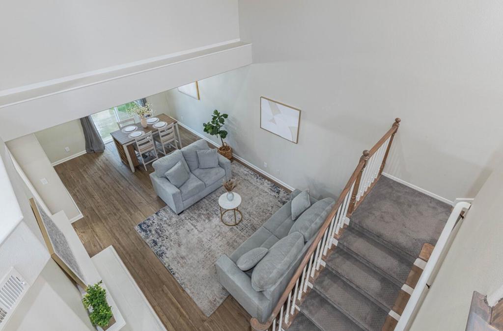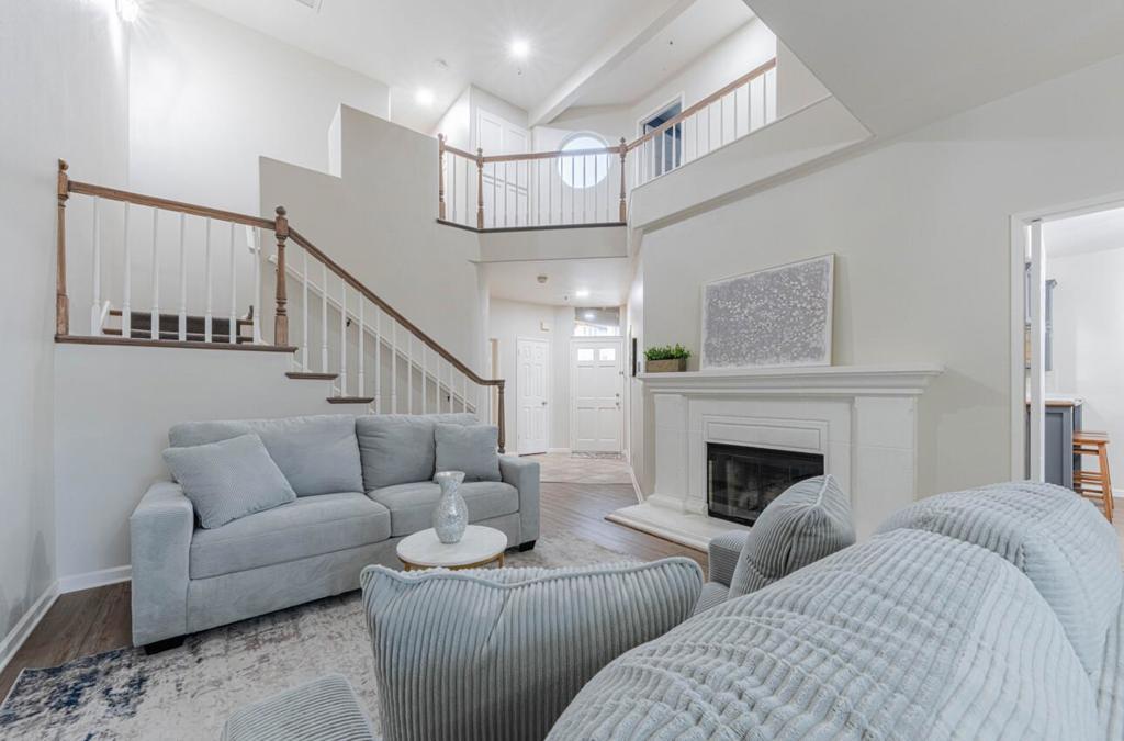 Welcome home to this beautifully updated end unit in a gated Creekbridge community. With only 32 units, this neighborhood offers a rare blend of privacy and comfort. This 3 bedroom, 2.5 bath residence shines with an upgraded kitchen featuring granite countertops, stainless steel appliances, and modern finishes throughout. Enjoy multiple living spaces with both a welcoming living room with a fireplace and a separate family room, perfect for relaxing or entertaining. Upstairs convenience continues with an indoor laundry room on the second level. The primary suite delivers the wow factor with its own fireplace, private balcony, and a spa inspired bathroom featuring a soaking tub, oversized walk in shower, and spacious walk in closet.