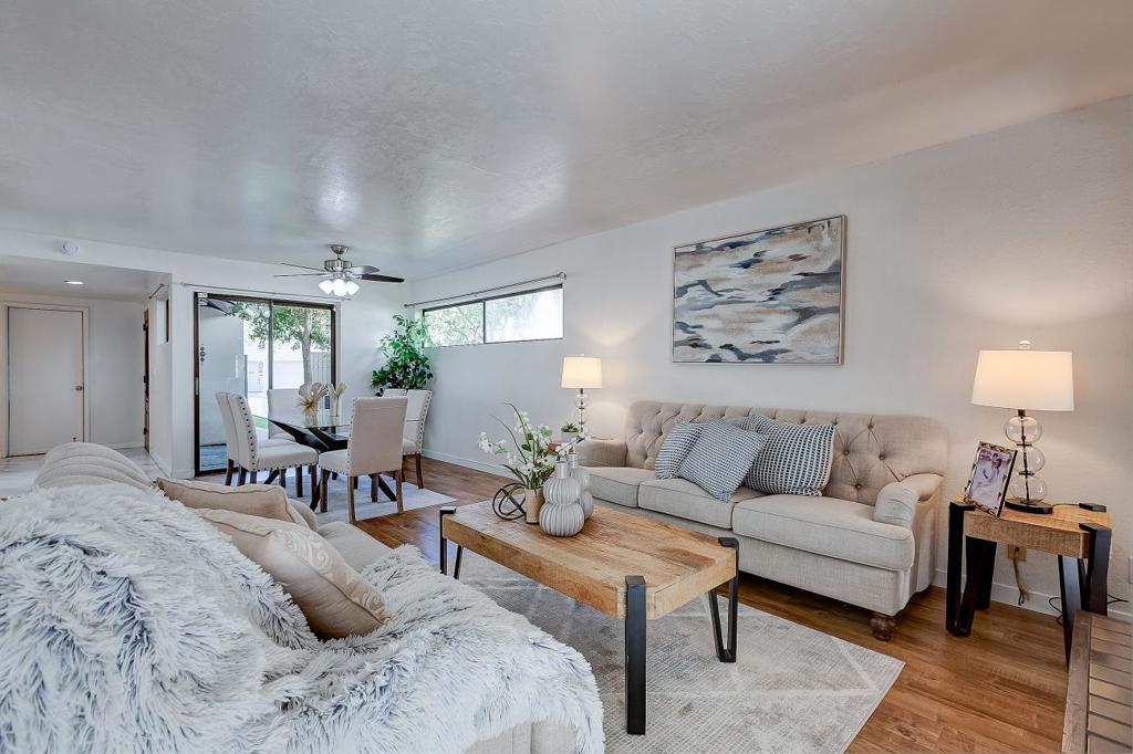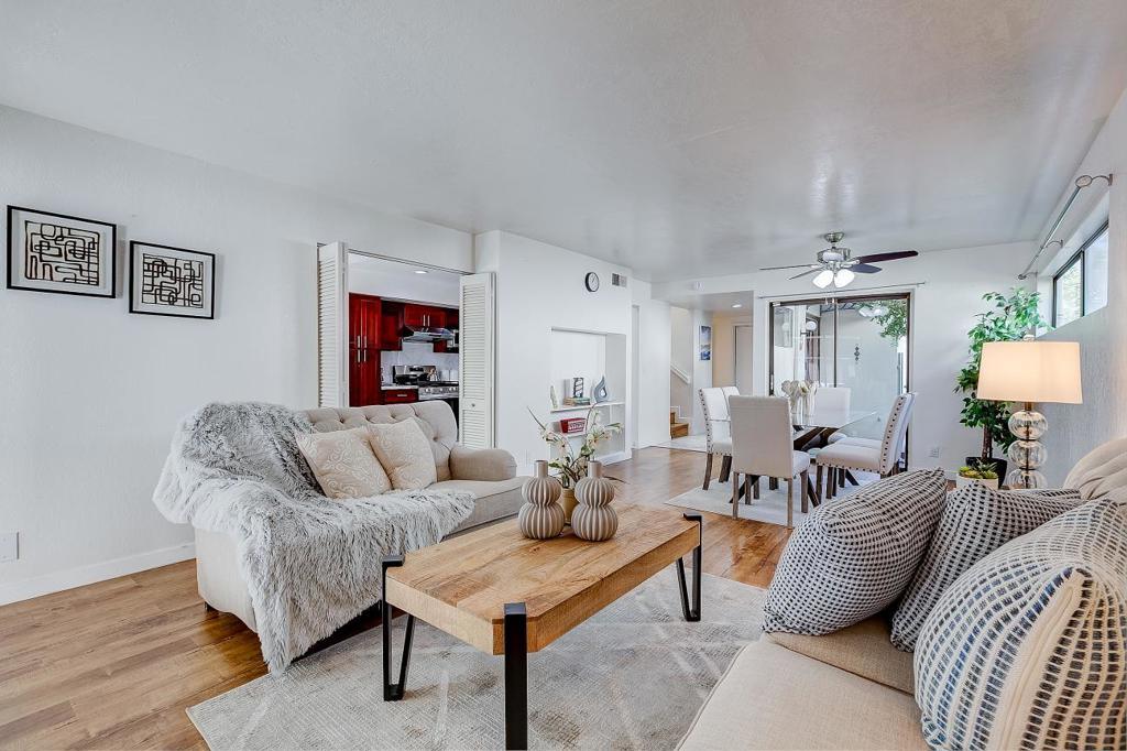 Stunning end-unit townhouse in the highly desirable East Foothills, offering beautiful views of rolling evergreen hills and mountains. This spacious home features 4 bedrooms, 2.5 bathrooms, and a 2-car garage with additional driveway parking. The bright, open floor plan includes a generous living room, dining area, and a fully upgraded gourmet kitchen with granite slab countertops, full backsplash, and modern finishes. Upstairs bedrooms feature private balconies with scenic hillside views, creating a peaceful retreat. The home is enhanced with laminate flooring throughout, ceiling fans, and upgraded bathrooms, offering both style and comfort. Abundant natural light fills the space, complementing the open and airy feel, while well-designed layouts provide functionality and everyday convenience. Situated on a premium corner end unit in a gated community with no rear neighbors, this home offers exceptional privacy, abundant natural light, and a peaceful setting. Located in the sought-after 95148 zip code with access to top schools, this move-in ready home is in excellent condition and offers the perfect blend of comfort, style, and convenience. Dont miss this exceptional opportunity!