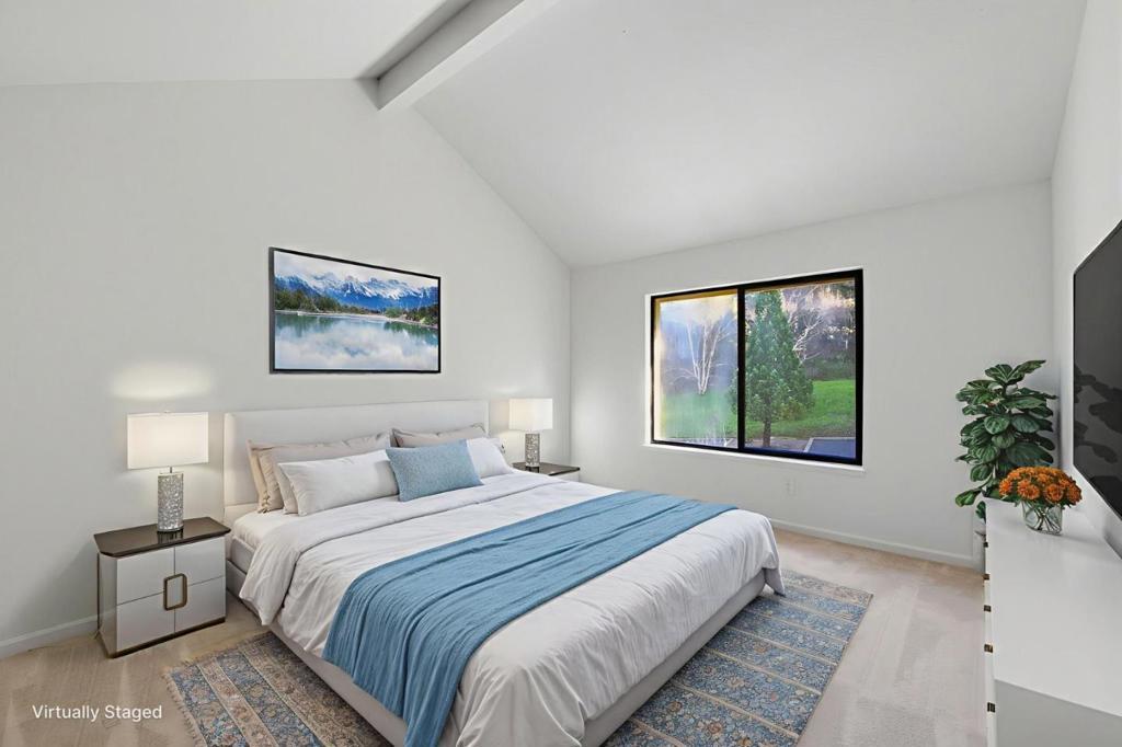 Must see this UNIQUE property to appreciate amazing views! This large well maintained 3BR, 2BA hilltop private ZEN sanctuary. A freshly painted interior, new plush carpeting, and dramatic vaulted, beamed ceiling set a calming, elevated tone. Sunlight pours through expansive windows, drawing your eye to peaceful greenbelt and hillside vistas, while multiple balconies create views. The main level is intentionally configured for easy style living, with the living and dining areas, kitchen, laundry, and a serene primary suite all on one floor and easily accessed from the skylit entry or the attached two-car garage. The lower level is tucked away for privacy and features two generous bedrooms with wonderful outlooks and a full bathideal for guests, or multi-generational living quarters. An oversized attached garage with built-in cabinetry offers abundant storage for everyday essentials, outdoor gear, and hobby items. Residents of Scottsborough enjoy a sparkling pool, relaxing spa, and nearby park, along with the convenience of being moments from shopping, cafés, and top-rated Scotts Valley schools. With Highway 17 only about five minutes away, this home delivers a rare blend of tranquil hilltop living, lock-and-leave convenience, and easy access to both Silicon Valley and the coast.