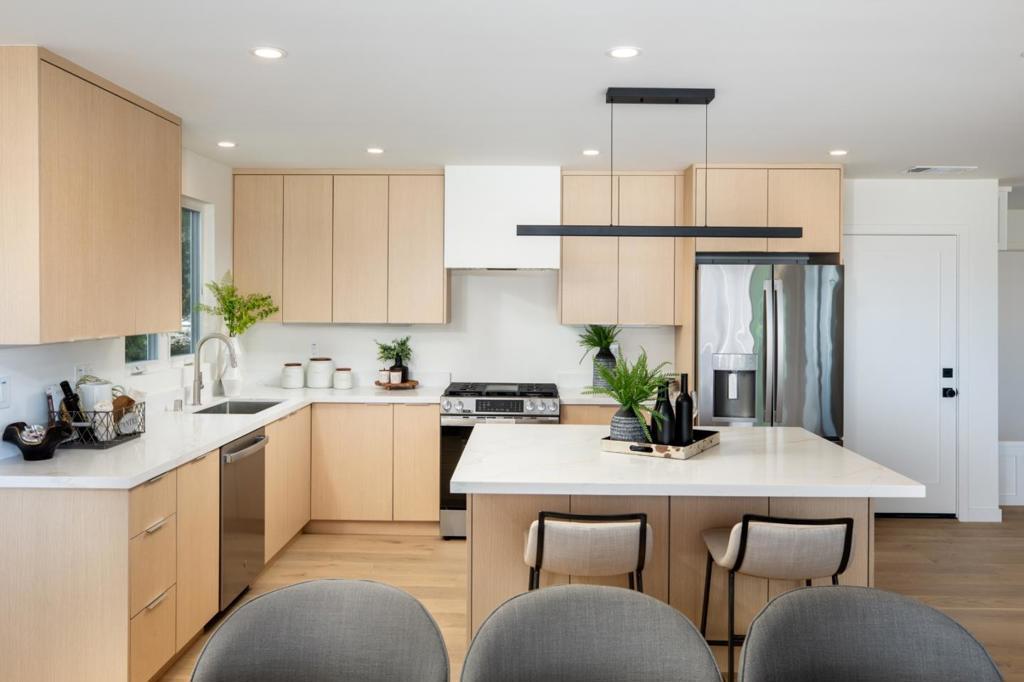 Experience a masterclass in modern design at 1689 Sunnyslope Avenue, a 2,018 sq. ft. residence reimagined for 2026. The heart of the home is a spectacular main-level Great Room bathed in natural light, where nearly every window frames expansive, breathtaking views of the Bay and Mountains. This airy space flows through a 16-foot stackable sliding door to a permitted two-level deck with modern cable railing, perfect for entertaining. The lower level features an intimate family room flanked by two bedroom suites, creating an ideal, private "zone" for older children or guests. Convenience is built-in with a dedicated inside laundry room with ample storage space. Every inch feels brand new, featuring 100% all-new electrical with designer recessed and flush-mount lighting, as well as all-new plumbing, gas lines, and central HVAC. Luxury defines the interior, from wide-plank European white oak floors and Level-5 drywall to a chefs kitchen with designer cabinetry and quartz counters. With three ensuite bedrooms, a private office, and custom-built bathroom vanities, this home offers the peace of mind of new construction with the character of an established Belmont setting.