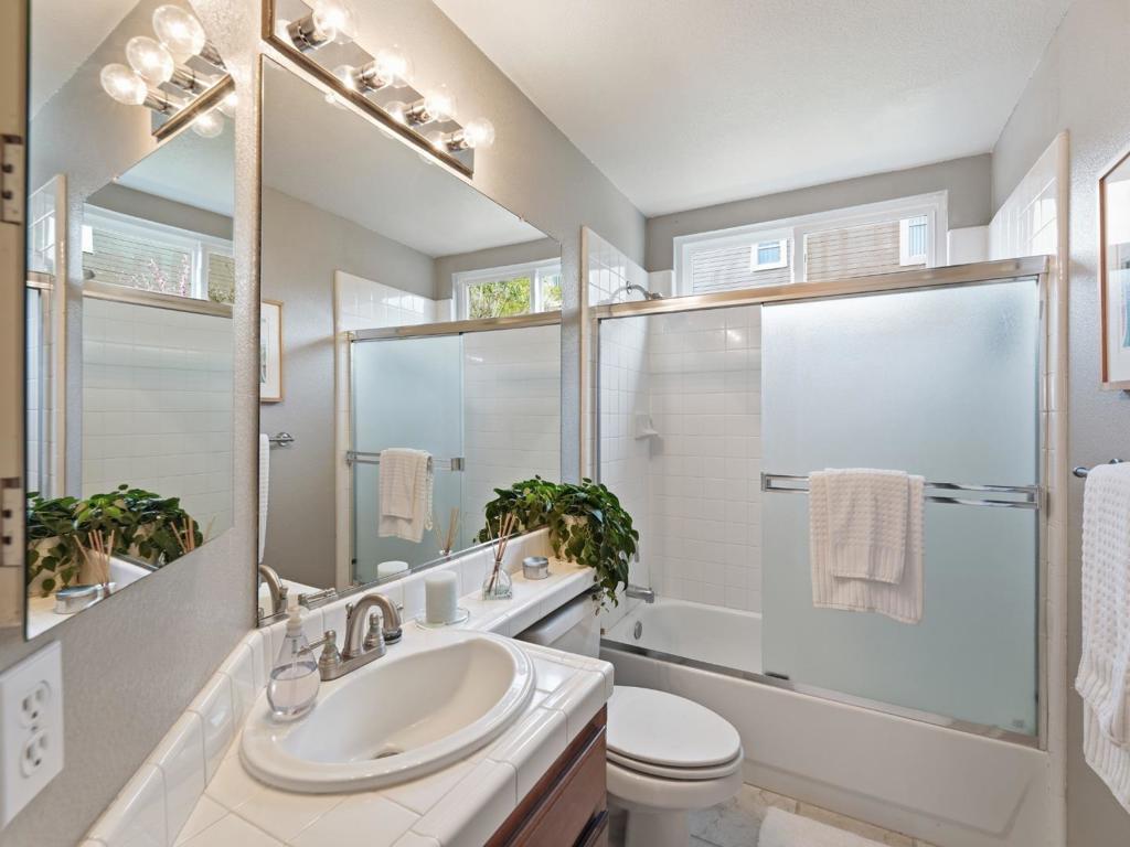 Rare Opportunity in a Premier Gated Scotts Valley Community. Located in one of Scotts Valleys most desirable neighborhoods, this beautifully maintained 4-bedroom home offers approximately 3000 +/- sf. of living space on over one-third of an acre, providing exceptional privacy, space, and style. The open, light-filled floor plan features vaulted ceilings, new carpet throughout, and dark wood flooring in the living and family rooms. The updated kitchen includes granite countertops, newer stainless-steel appliances, italian porcelain tile flooring, and new sliding door opening to the rear patio. Features include a first-floor guest bedroom, first-floor bonus room ideal for office or game room, and a spacious primary suite with soaking tub, separate shower with new frameless etched glass, dual vanities, and walk-in closet. Upstairs offers a large loft perfect for a study, second family room, or optional bedroom. 3-car garage with built-in storage cabinets. Enjoy California outdoor living with a large stamped-concrete patio and private backyard with no rear neighbors. Elevated setting with charming front porch and sunset views. Close to top-rated Scotts Valley schools, shopping, highways, and the beaches of Santa Cruz, this home offers the very best of Central Coast living.