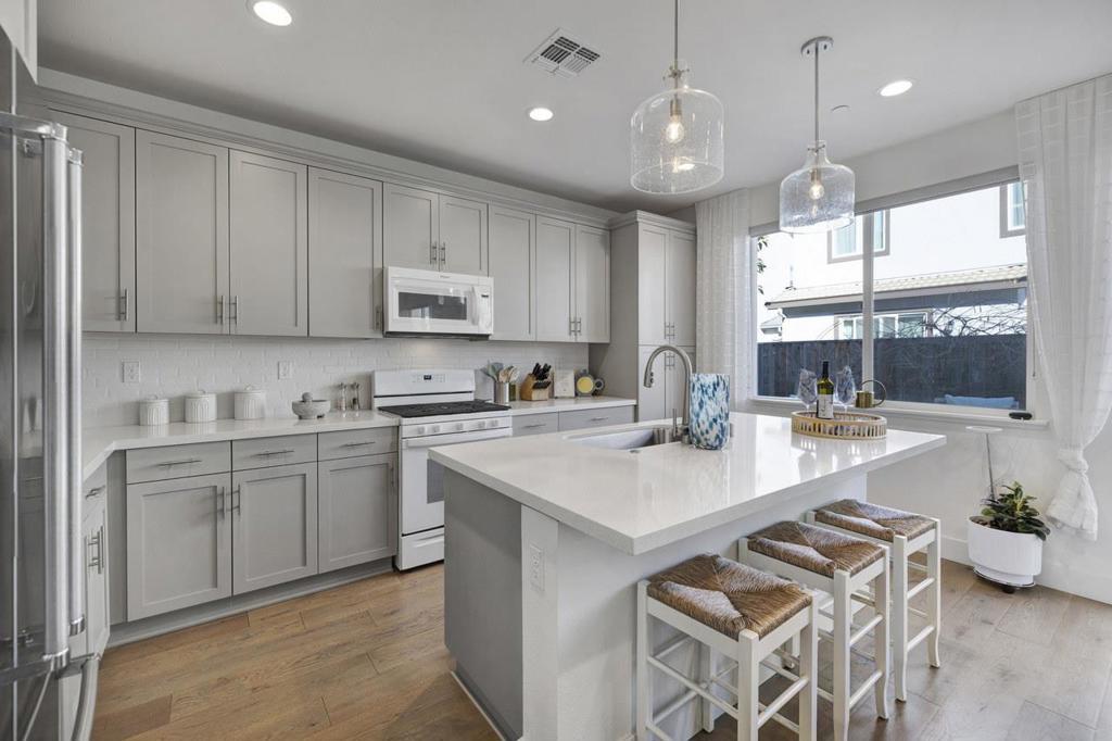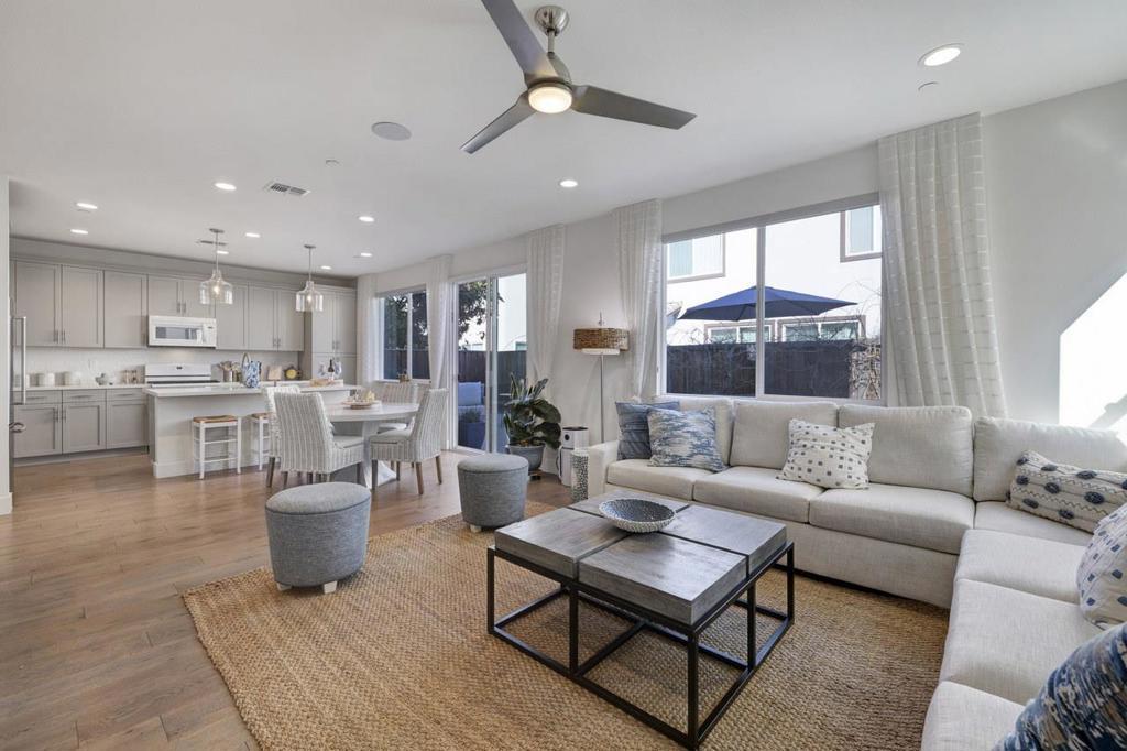 Former Model Home with $100K+ in Designer Upgrades! Welcome to this beautifully upgraded Kiper Homes residence in the highly desirable Carousel community at Westfield in Hollister. This turnkey home blends modern style, thoughtful design, and exceptional value among newer homes in the area. Offering rare model-home upgrades and turnkey condition at a price point thats difficult to find in newer construction, this home stands out as one of the best values in the Carousel community. The light-filled open floor plan features gorgeous wood flooring, custom shiplap accents, and a chef-inspired kitchen with gray shaker cabinets, quartz slab countertops, white subway tile backsplash, and a large center island perfect for entertaining. A flexible main-level office offers ideal space for working from home or a bonus room. Upstairs, the spacious primary suite provides a relaxing retreat and a walk-in closet. Two additional bedrooms and a well-appointed laundry room with built-in cabinetry and sink complete the upper level. The landscaped backyard is perfect for low-maintenance living and entertaining. Outstanding opportunity to own a newer upgraded home on a quiet cul-de-sac for under $800K just minutes from the commuter corridor to Morgan Hill and South San Jose!