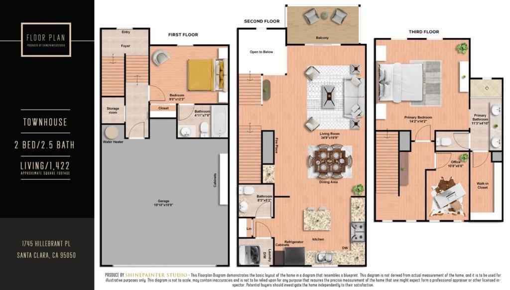 Welcome to this stunning east-facing townhome at the center of Santa Clara! This contemporary three-story residence offers 2 bedrooms plus a bonus office. The open-concept main living level features a stylish kitchen with a large island, granite countertops, stainless steel appliances and upgraded cabinets. The versatile floor plan includes a private balcony, a ground-floor bedroom suite with patio access - ideal for guests or multi-generational living. Upstairs, the luxurious primary suite offers dual vanities, standing shower and a walk-in closet. A customized office offers extra space for privacy and can also be used as a storage. Additional highlights include high ceiling, recessed lighting, hardwood flooring, central heating and cooling, gas fireplace, door camera with audio intercom, security system, water filtration system, and an attached 2-car garage with 220V EV outlet. The well-maintained community amenities include a park, playground, BBQ and picnic area. Ideally located near Santa Clara Town Center, major tech campuses like Nvidia, Intel and Apple, and convenient commuter routes. City parks, city hall, libraries, schools, shopping, dining, and entertainment are just minutes away. This is an incredible opportunity to experience the best of Silicon Valley living!
