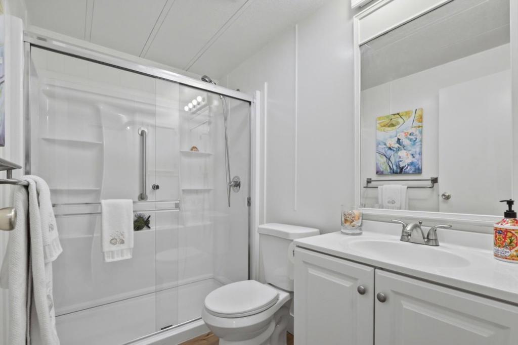 This is the home you have been dreaming about. This gorgeous 3-bedroom 2-bath manufactured home features a two-car garage & is located in the 55+ age-restricted Mountain Springs Mobile Home Park. Come enjoy the serenity of this home nestled in the quiet valley below Communication Hill with a view of the surrounding hills. Walk up the sidewalk and open your gate to behold a private fenced yard with a large wood deck, pergola and low maintenance landscaping. This home is upgraded with newer roof, large skylights, newer heater, & hot water heater. The inside laundry room includes a separate office space. The spacious living/dining area features new LVP floors & vaulted ceiling. The kitchen includes granite counters & stainless-steel appliances. The huge primary bedroom offers a large closet, ceiling fan, & sliding door opening to the deck & yard. The primary bath has garden tub & separate shower. The secondary bath features a new walk-in shower & new vanity. Remember the neighborhood you grew up in as a kid? This is that neighborhood. Come see for yourself. Rent-controlled space rent is $1404.82/month.