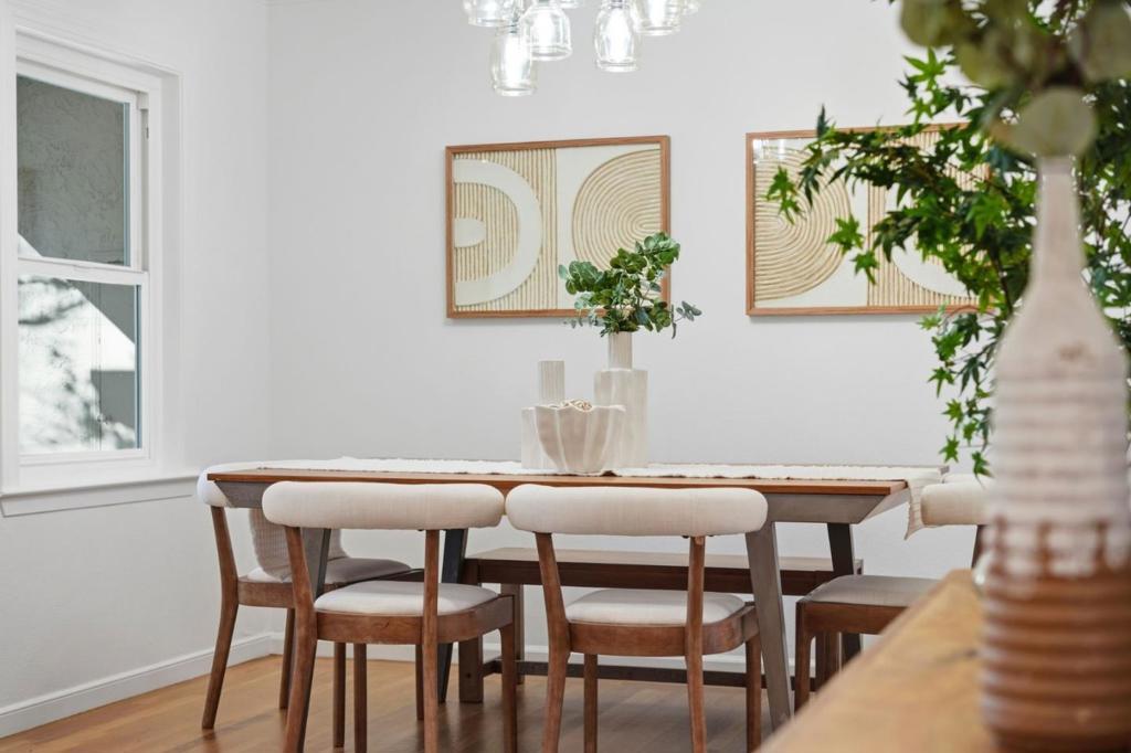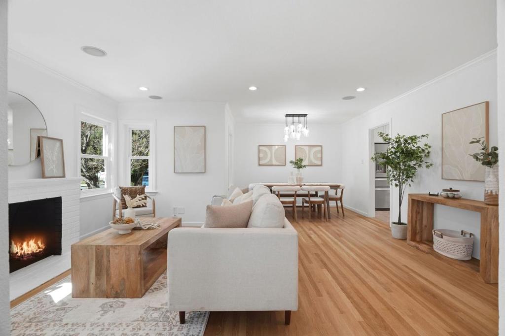 Charming 4-bed, 2-bath home in Sunnyvale. Offering 1,500 sq ft of living space on a generous 6,254 sq ft lot, this property provides the perfect balance of comfort, style, & outdoor enjoyment. Beautiful curb appeal immediately captures your attention, w/ a classic white picket fence that creates a welcoming, storybook feel & makes the front yard truly inviting. Step inside to an inviting living area featuring a cozy fireplace, ideal for relaxing evenings at home. The kitchen is designed w/ ample space for cooking & gathering, flowing seamlessly into the dining area within the living room for easy entertaining. Beautiful hardwood flooring throughout the home creates a warm & elegant atmosphere. The 3 secondary bedrooms are generous in size, offering flexibility for family, guests, or a home office. The primary retreat provides a peaceful escape & features a large walk-in closet & a sliding glass door w/ beautiful views of the backyard, allowing natural light to pour in & creating a true indoor-outdoor connection. The backyard is thoughtfully landscaped, offering a private oasis perfect for relaxing or hosting. Enjoy evenings under string lights while unwinding in the hot tub, creating the perfect setting for year-round enjoyment. Located within award-winning Sunnyvale schools.
