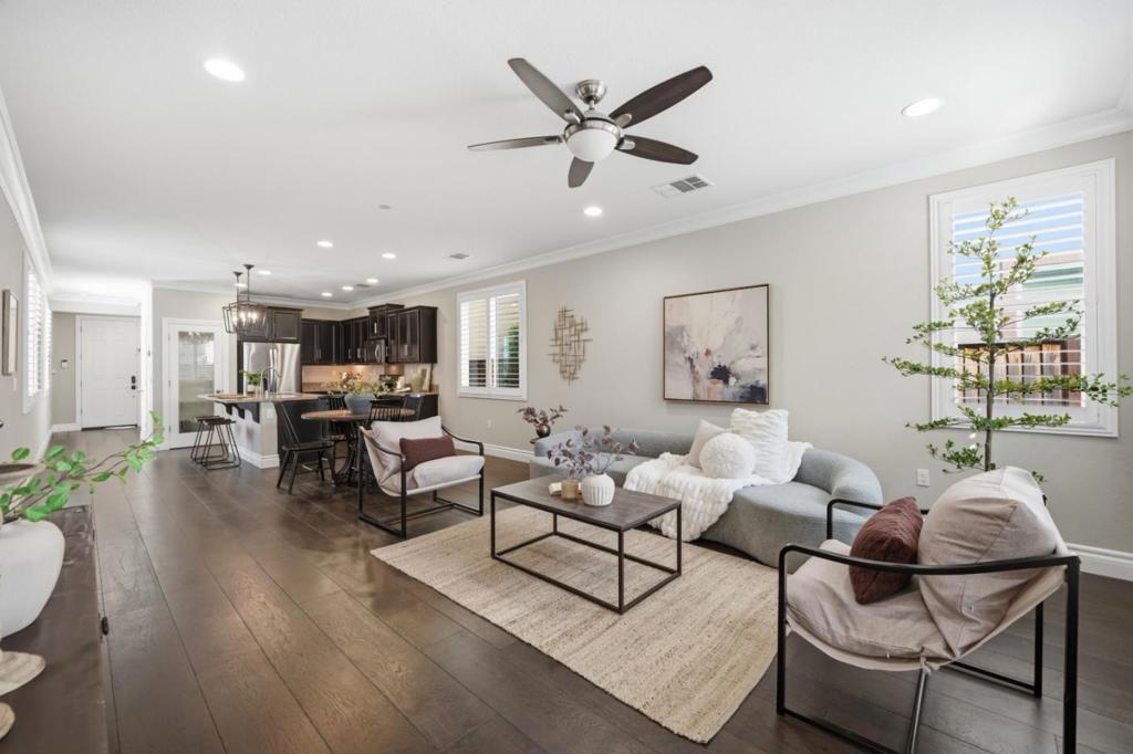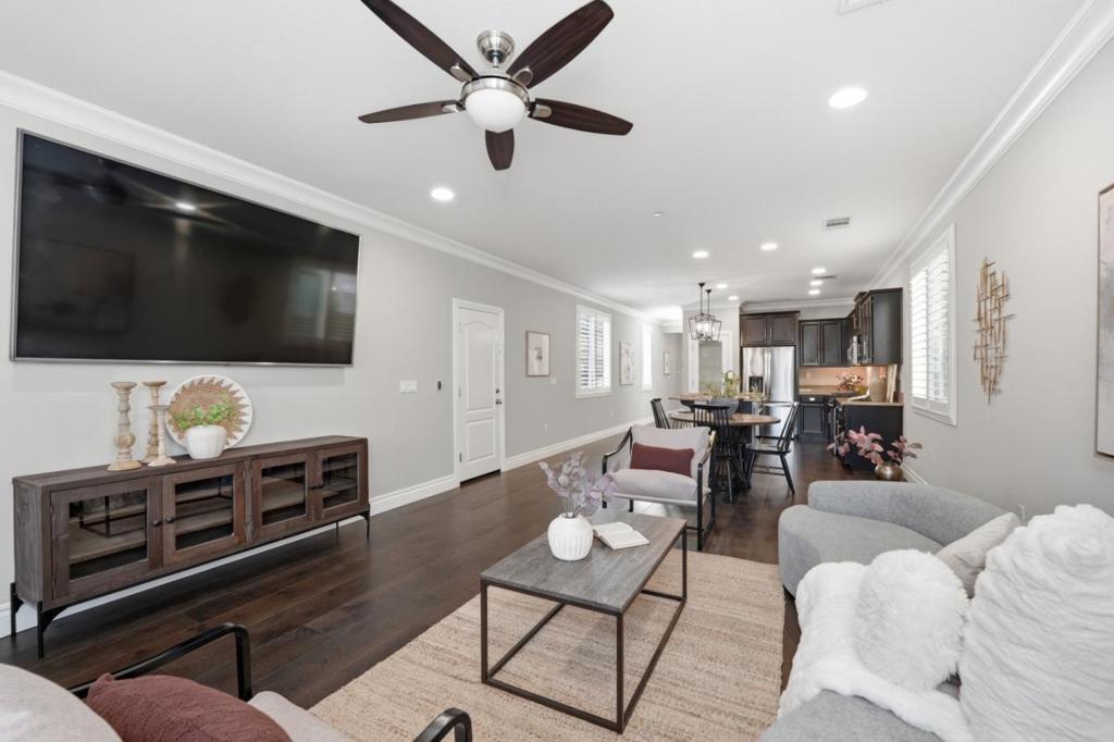Nestled in a charming gated community, this move-in ready Meritage home offers 3 bedrooms, 2.5 baths, and ~1,870 sq ft of stylish living space. The light-filled kitchen features granite countertops, stainless steel appliances, a pantry, and an eat-in area that flows seamlessly into the family room perfect for gathering with loved ones. Hardwood floors, crown molding, plantation shutters, a built-in office nook, and upstairs laundry bring timeless style and everyday function to every corner of the home. The professionally landscaped backyard with built-in BBQ and outdoor kitchen is your private retreat for year-round entertaining. Owned solar keeps energy costs low, while a 2-car garage and automatic sprinklers complete this turnkey package. Beyond your front door, enjoy scenic community walking trails, a dedicated dog park, and a short stroll to the beloved Gilroy Gardens. Easy freeway access puts Monterey, Santa Cruz beaches, premier wineries, and shopping just a short drive away. This is the lifestyle you've been waiting for!