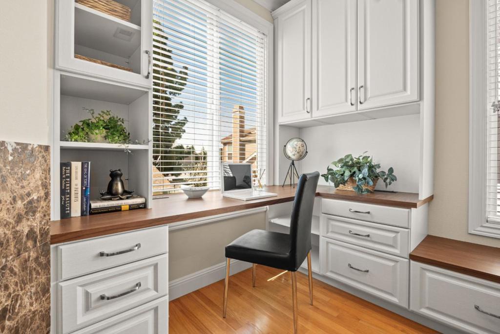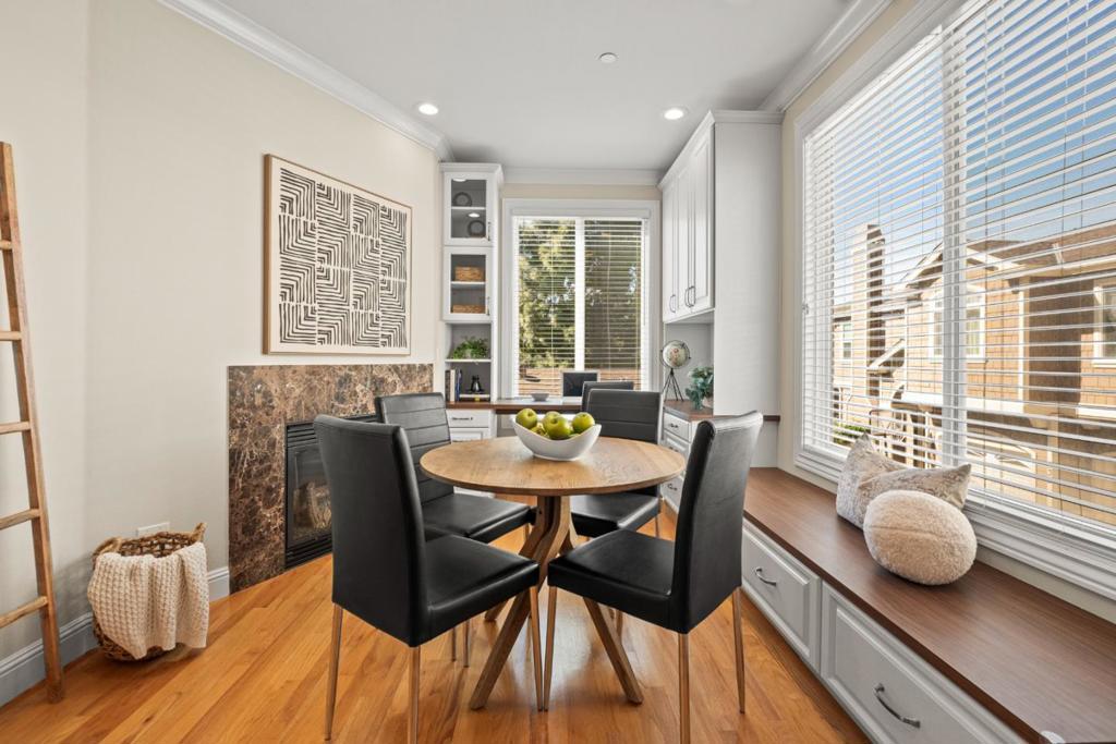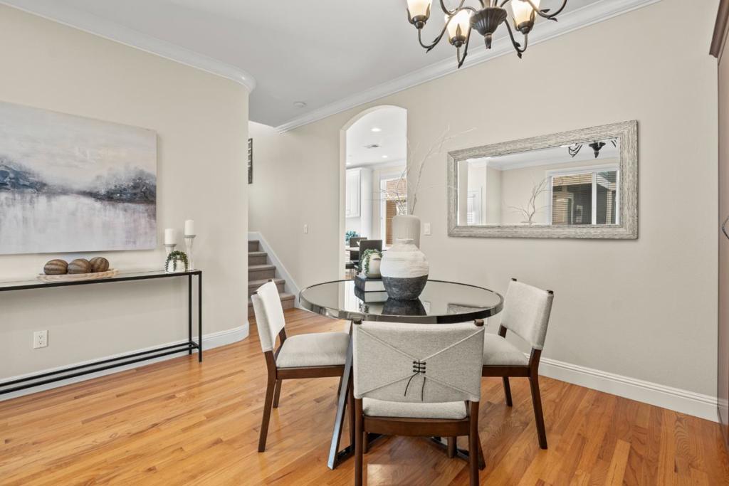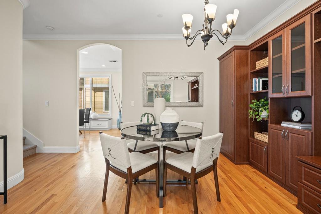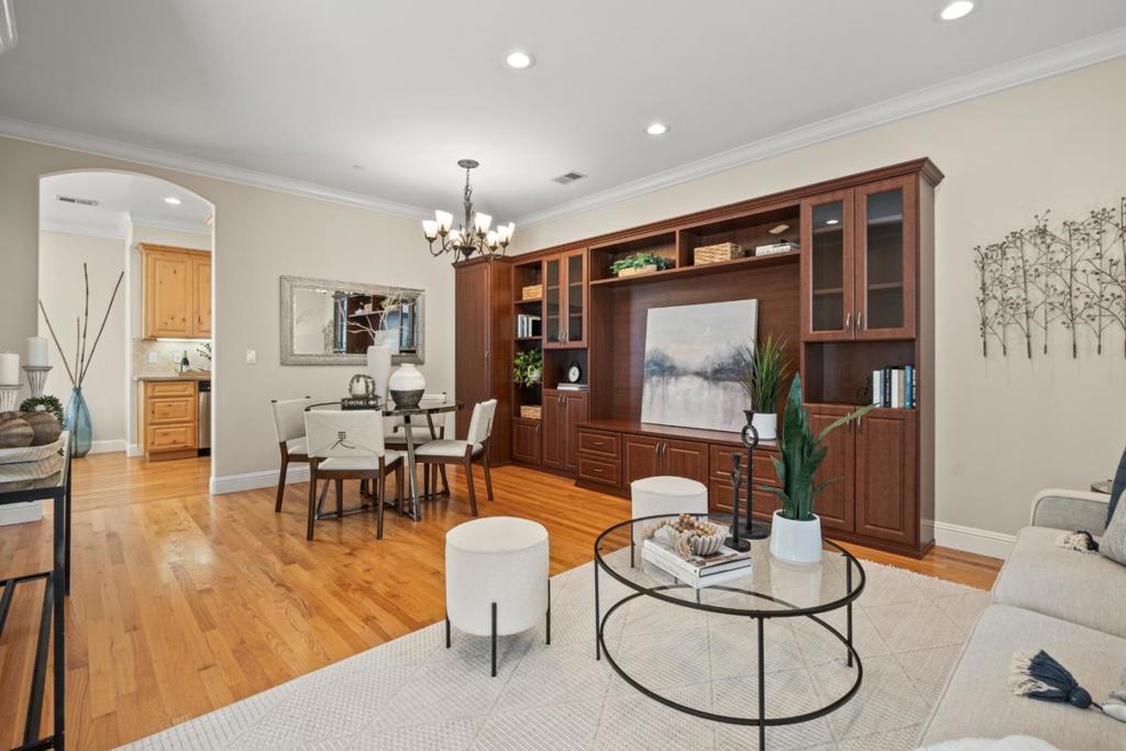 Prime Location | Boutique Community | Luxury Finishes Welcome to this beautifully appointed DaVinci Homes townhome in an intimate community of just 8 residences! This home features an open-concept floor plan with 9 foot ceilings, gleaming hardwood floors, and large dual-pane windows throughout. Enter to find the living area with built-in shelving and an abundance of natural light. The kitchen area features a fireplace, a built-in desk, GE Profile stainless steel appliances, granite slab countertops, gas range, and a built-in microwave. Spacious bedrooms include cathedral and coffered ceilings, crown molding, and custom closet organizers. The primary suite features dual sinks, a jacuzzi soaking tub, separate stall shower, and travertine flooring. Additional highlights include indoor laundry, an attached 2-car garage, and low HOA dues of just $270/month. Ideally located minutes from Apple, Netflix, Santana Row, Westfield Valley Fair, Central Park, and easy access to Hwy 280 and major commute routes. Don't miss this rare opportunity in a highly desirable Silicon Valley location!
