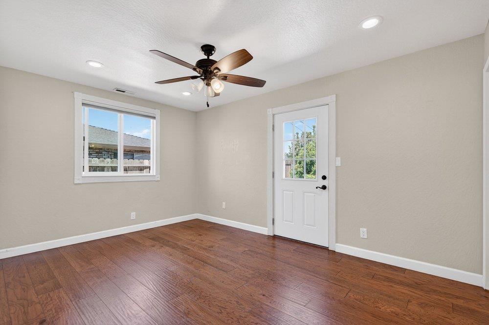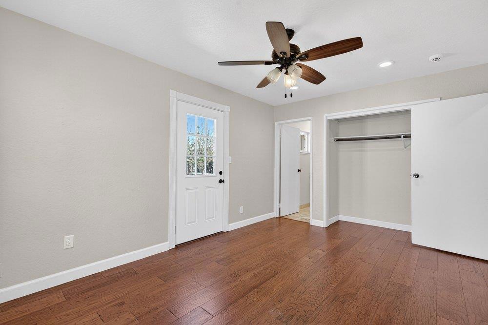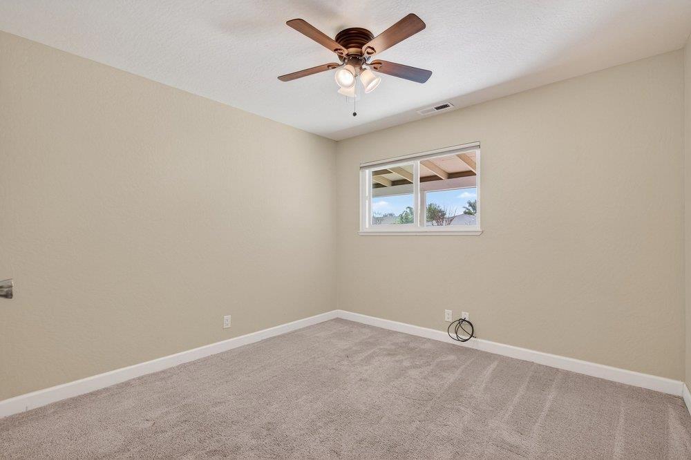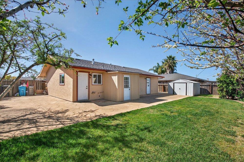 Welcome to this inviting 3-bedroom, 2-bathroom home in the charming city of Hollister. Spanning 1,300 square feet, this residence offers a blend of comfort and functionality and possible RV parking. The kitchen is equipped with modern amenities, including an exhaust fan, garbage disposal, built-in oven range, and microwave, as well as a gas oven range, making it perfect for culinary endeavors. The eat-in kitchen is perfect for family meals, ensuring a cozy dining experience. Flooring throughout the home includes carpet and laminate, providing a warm and comfortable atmosphere. Central AC and forced air heating ensure year-round comfort. The laundry is conveniently located in the utility room, making chores a breeze. Additional structures, such as a shed, offer extra storage. The backyard has a large patio made of stamped concrete surrounded by apple, peach, apricot, and orange trees. Situated within close proximity to schools, shopping, the fire department, and the hospital.