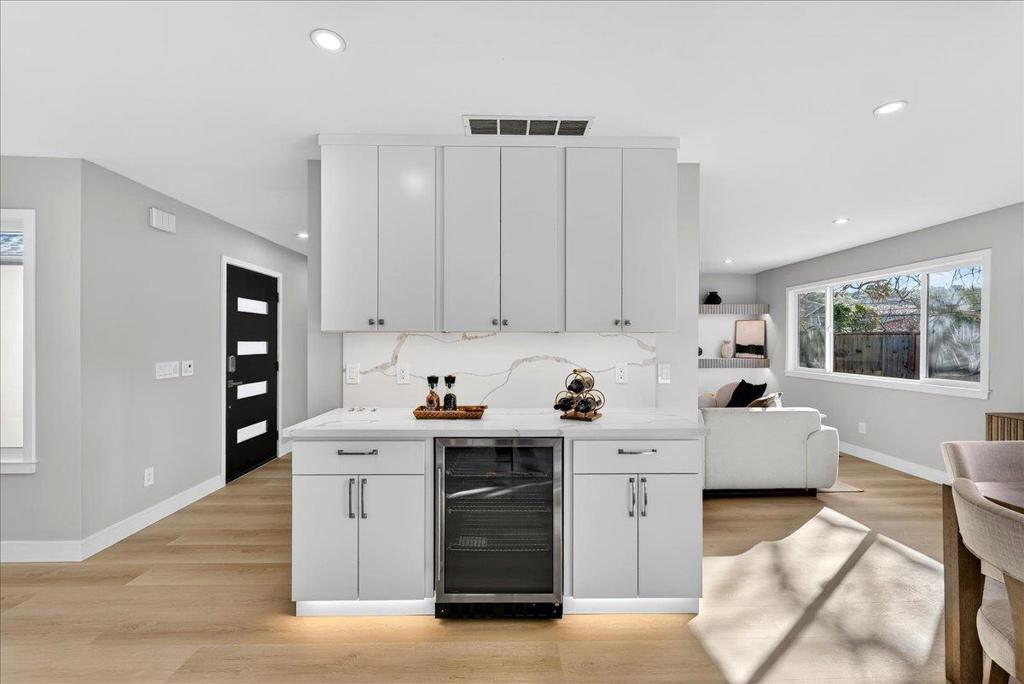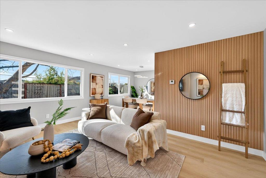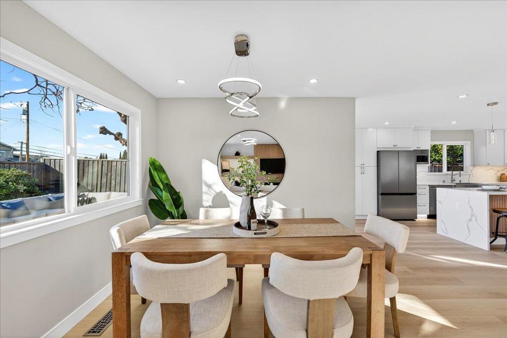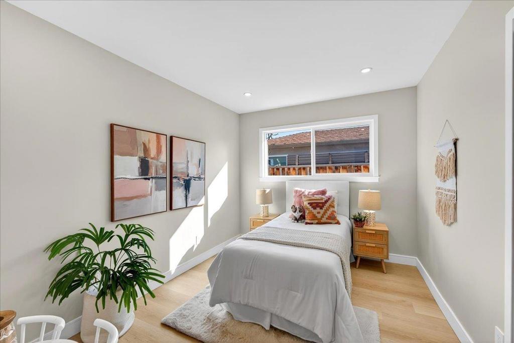 Welcome to this fully remodeled charming 4-bedroom, 2-bathroom home in the vibrant city of San Jose. Spanning 1,640 square feet, this residence offers a modern open-concept layout. The heart of the home is the beautifully appointed kitchen, featuring sleek quartz countertops, a spacious island, and stainless steel appliances including a dishwasher, microwave, oven range, and refrigerator. The kitchen seamlessly flows into the family room, creating a perfect space for gatherings and family meals. The home boasts durable laminate flooring throughout, providing both style and ease of maintenance. A cozy fireplace adds warmth and ambiance to the living space, ideal for relaxing evenings. The property is equipped with central air conditioning and heating to ensure year-round comfort. Additional amenities include a convenient laundry area and a two-car garage. This home is situated within the San Jose Unified School District. Experience the best of San Jose living in this well-appointed home, offering both comfort and functionality.