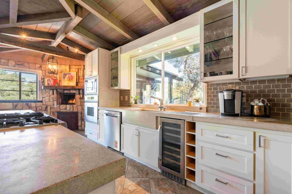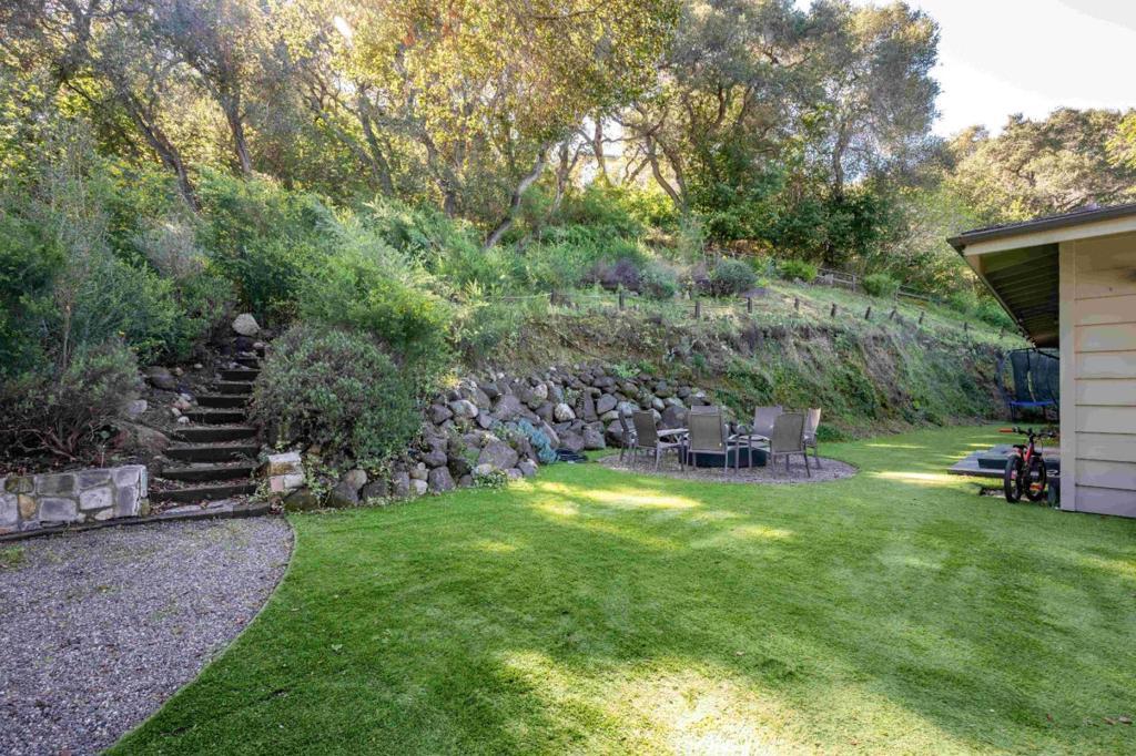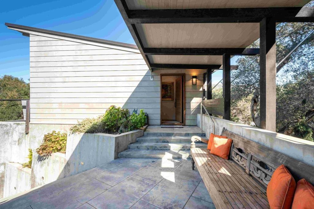 This 2459 sq.ft. one story home and attached guest quarters via open air walkway (not an ADU) over 818 sq.ft. 2 car garage with workshop, is perched serenely on the hillside above Carmel Valley Village in the coveted Robles Del Rio neighborhood. The expansive concrete deck offers views of sunsets to the west. Private garden areas surround the home and offer quiet sitting areas around a fire pit and relaxation in the hot tub. Tiled gourmet kitchen with large island and gas cooktop, charming wall fireplace in the breakfast nook designed for ambiance or indoor grill. New fridge and dishwasher join the wine fridge, oven and microwave. Sauna in primary bathroom. Workshop has a three-phase commercial grade electrical system, 400 amp power, and is heated with radiant wall panels. Property's hot water is fueled by 3 gas Naview tankless heaters, providing endless hot water. There are several outbuildings for yard equipment and the mature landscaping is on a high efficiency irrigation system. This property comes with private river access on Lower Circle and is a shareholder in the Robles Del Rio Water Company.