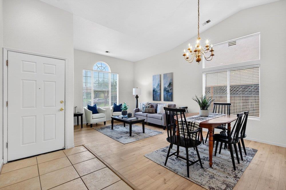 Charming and move-in ready, this 4-bedroom, 2-bath home in the heart of Hollister combines comfort, space, and versatility! Boasting 1,577 sq. ft. of living space on a generous 6,621 sq. ft. lot, the home features fresh flooring in the bedrooms and select areas. A cozy living room with a fireplace invites relaxation, while a separate family room offers even more space to gather, entertain, or unwind. The kitchen offers all new appliances. There's also a versatile bonus room perfect for a home office, playroom, or creative space. The primary suite serves as a peaceful retreat with an ensuite featuring double sinks for added convenience. Outside, the spacious yard is a blank canvas, ready for your vision. Conveniently located near Cerra Vista School, shopping, dining, and the hospital, this home is perfectly positioned for easy living. A fantastic find for first-time buyers or investor. Don't let this opportunity pass you by! ~Buyer to verify any and all information~