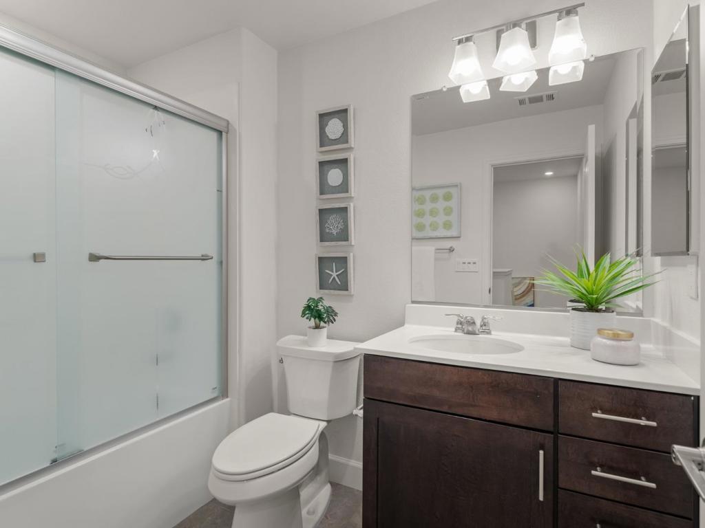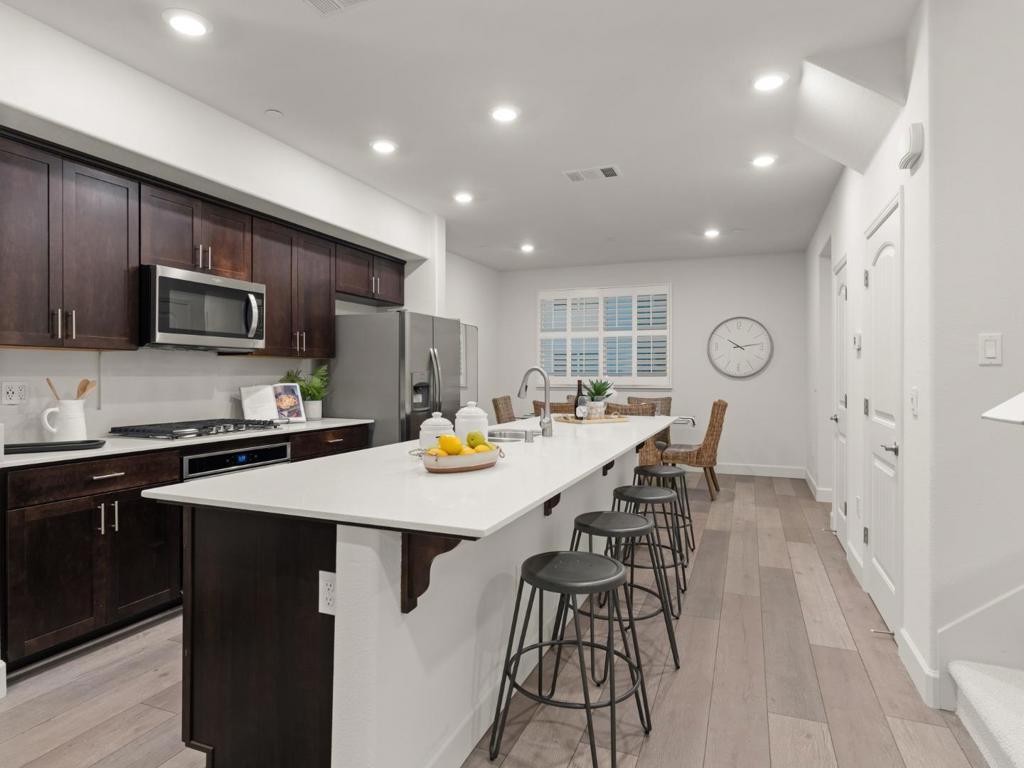Welcome to modern living in the desirable Communications Hill community of San Jose & the greater Silicon Valley. Built in 2020, this spacious tri-level townhome offers 4 bedrooms and 3.5 baths across approximately 1,995 sq ft of thoughtfully designed living space. The versatile floor plan features a convenient ground-level bedroom with an en suite bath - ideal for guests, extended family, or a private home office. The main living level showcases an open-concept great room filled with natural light, seamlessly connecting the living, dining, and kitchen areas for comfortable everyday living and easy entertaining. The contemporary kitchen features sleek countertops, stainless steel appliances, a gas cooktop, generous cabinetry, and a large island with bar seating. Upstairs, the spacious primary suite offers a walk-in closet and a well-appointed bathroom with dual sinks and modern finishes. Two additional bedrooms and a full bath provide flexibility for family, guests, or workspace needs. Additional highlights include plantation shutters, tankless water heater, water softener, in-unit laundry, and an attached 2-car garage. Enjoy nearby parks, scenic walking trails, and convenient access to shopping, dining, transit, Highway 85, 87 and the greater South Bay. You'll love it!