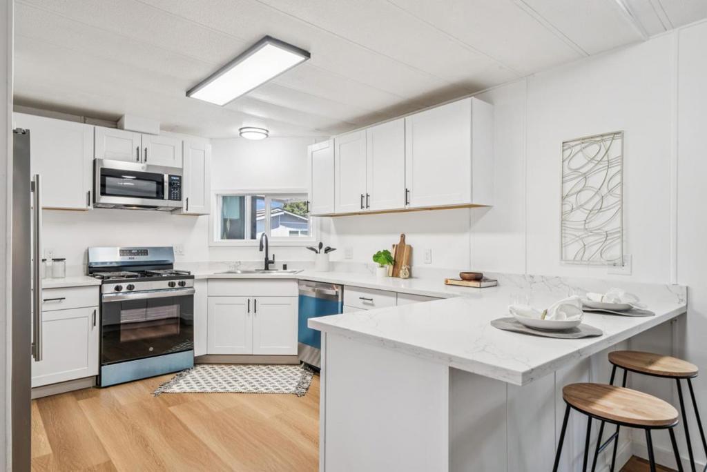 Beautifully renovated manufactured home in the highly desirable Chateau La Salle all-age community. Completed in July 2025, this thoughtfully updated residence features modern finishes, fresh interior and exterior paint, new flooring, updated fixtures, and a bright, open living space designed for comfortable everyday living. The kitchen offers clean lines and contemporary touches, flowing seamlessly into the main living area for an inviting layout. Bedrooms are well-sized with ample natural light, and the refreshed bathrooms showcase stylish upgrades and functional design. Brand new roof and water heater add peace of mind and long-term value. Chateau La Salle is a well-maintained, resident-managed community with resort-style amenities including clubhouse, pool, spa, greenbelts, and community activities. Conveniently located near shopping, dining, and major commute routes, this home blends comfort, style, and accessibility. Move-in ready opportunity in one of San Jose's most established manufactured home communities.