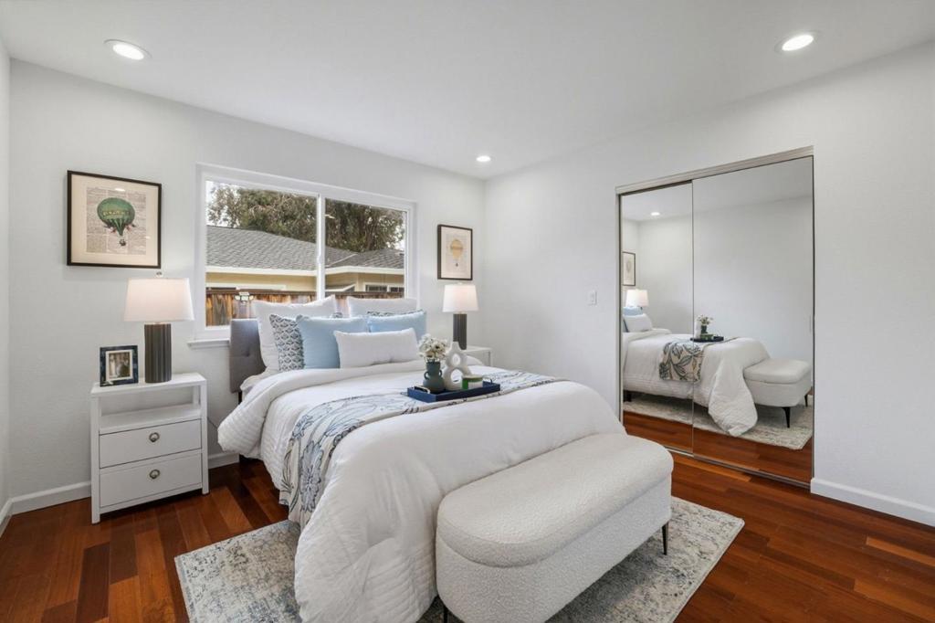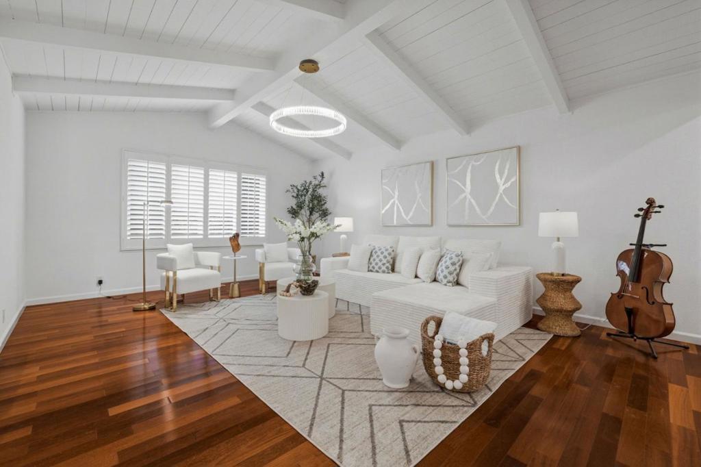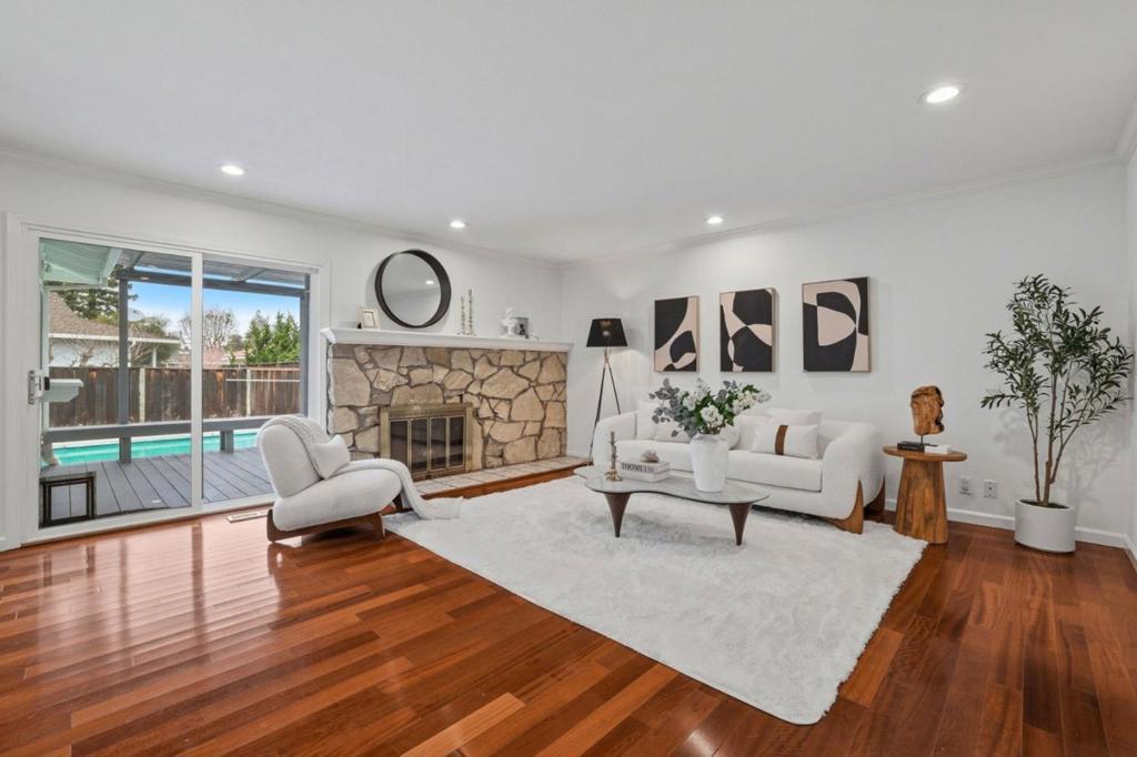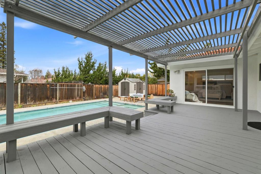 Welcome to this stunning 4-bedroom, 3-bathroom spacious home nestled in the desirable Saratoga. 2,498 sq ft of comfortable living offers the space your family to grow and thrive. Located in a neighborhood known for its charm, vibrant and convenience, the home features solid craftsmanship and generous proportions throughout. Grand Living Room featuring soaring ceilings and a stunning Tierra chandelier. The adjacent Dining Room flows seamlessly into the spacious open-concept chef kitchen, complete with an island, stylish infinity lighting, abundant cabinetry, gas stove, ovens, and lots of windows lookout to serene views of blooming roses in the backyard. Spacious Great Room showcases gleaming wood floors and easy access to the outdoor wood deck and sparkling pool-perfect for entertaining in your serene private retreat. Primary Suite is designed for comfort & privacy, featuring a walk-in closet, an additional closet, with direct access to the huge backyard. Extra side yard to add your personal touches. Direct access to 2 car garage. Double paned windows, plantation shutters, new paint. First time on market in 40 years! Impressive flat lot with lots of potential. Great deal! Easy commute to tech hubs. Close to Neflix, Apple, Nvidia, AMD etc. Minutes to park, schools and shopping.