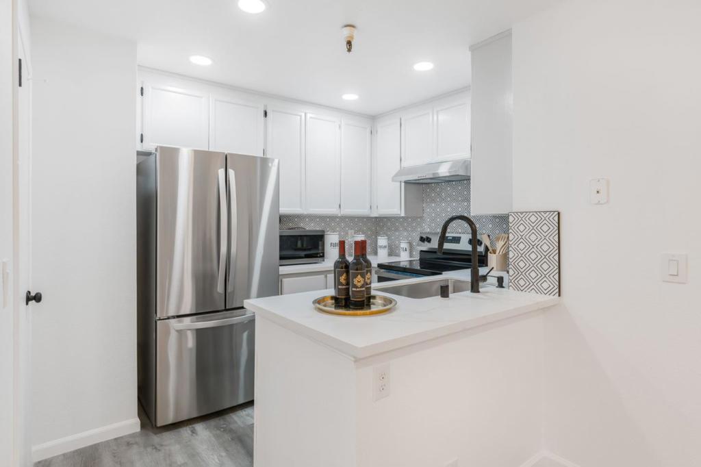 Welcome to this newly remodeled 2 bedroom home, nestled in a tranquil, park-like community in the heart of Silicon Valley. Homestead High School. Surrounded by lush redwoods and greenery, this community provides a serene and welcoming environment for families. Newly remodeled kitchen with quartz counters, stainless steel appliances and sink. Hardwood floors, recessed lights and brand new interior paint. Two spacious bedrooms feature large closets. Updated bathroom with brand new counters, sink and fixtures, tiles on the floor and walls around tub/shower combo. Inside laundry with washer and dryer provides the daily convenience. 2 car garage. Enjoy the community pool & spa, BBQ area, car wash station and open greenbelts. The HOA covers water, sewer, garbage. Located at a central location and close to parks, Sunnyvale DOWNTOWN, fine dining and many tech companies (Apple, Google, Linked-In, MS, Amazon etc.) Easy access to highway 101, 237, Central Expy and Caltrain stations. Award-winning Sunnyvale schools Homestead High. This home offers a great access to major commuter routes like 101, 237, 85, Cal-Train and Central Expressway.