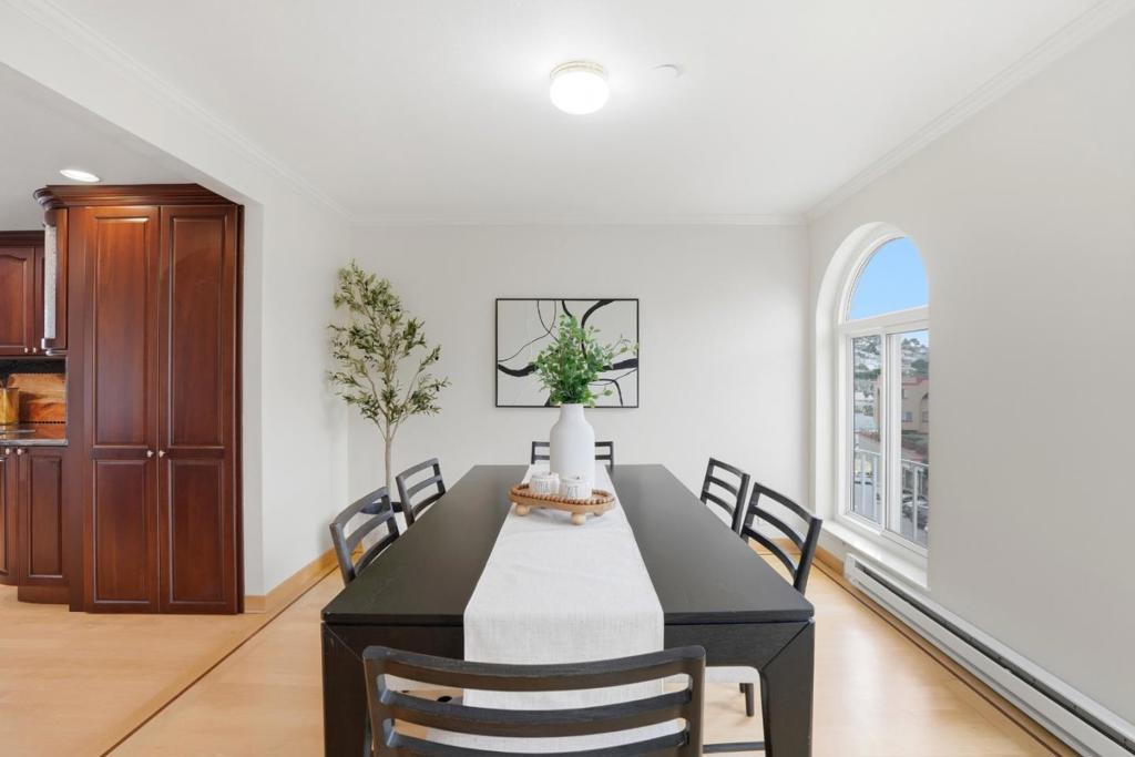 Welcome to the top floor penthouse unit 20 Dorado Terrace Unit C in a small 3 unit building with low HOA, parking & in-unit washer/dryer. A bright and spacious 4-bedroom, 2-bath flat offering comfort, flexibility & abundant natural light in San Francisco. Tucked within a well-positioned building, this thoughtfully designed residence opens to a sun-drenched living & dining area framed by expansive windows that fill the home w/ light throughout the day. A cozy fireplace anchors the living room, creating an inviting space for relaxing evenings. With an open layout & seamless flow into the main living space. The kitchen has cherry wood cabinetry, generous counter space & large window w/ natural light. A passthrough opening connects the kitchen to the dining area, making everyday living & entertaining feel connected and easy. With 4 true bedrooms, the layout offers flexibility for remote work, guests or households who need additional space. Both bathrooms have high quality finishes with tile and porcelain and a soaking tub one bathroom. Ideally located near Whole Foods, Trader Joes, Stonestown Galleria, neighborhood shops, dining, public transportation & w/ easy access to major freeways. Close to Riordan High School, SF State, and CCSF, offering excellent city convenience.