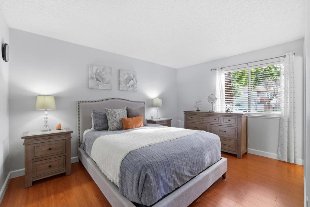 New Listing Opportunity in Berryessa neighborhood, San Jose! Lower-level rear corner Condo. Offers added privacy. Beautiful 2-bedroom, 2-bath condo with privacy away from the common area. This well-maintained and clean home features a modern kitchen with quartz countertops, electric range, microwave, dishwasher, and refrigerator. Laminate flooring runs throughout the home, adding a clean, contemporary feel. The spacious primary suite offers a large closet with shelves and updated bath with tiled shower. The second bedroom separates from the Primary bedroom by the updated hall bath with shower/tub combo. Additional highlights include in-unit washer and dryer, pantry shelving, and a private patio for indoor/outdoor living. The community pool is steps away for your enjoyment. Conveniently located to many shopping centers, public transportation, light rail, and Hwy 680 access.