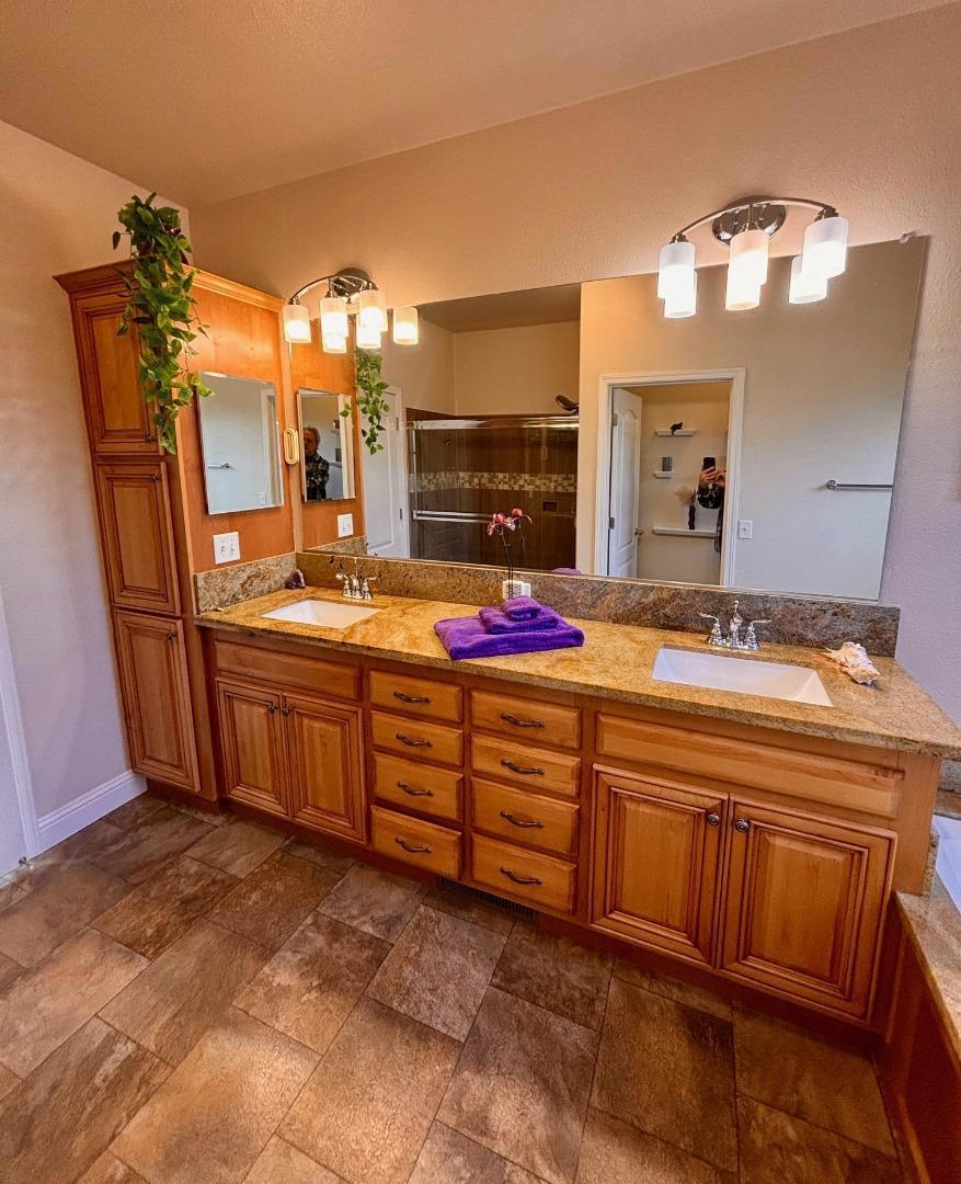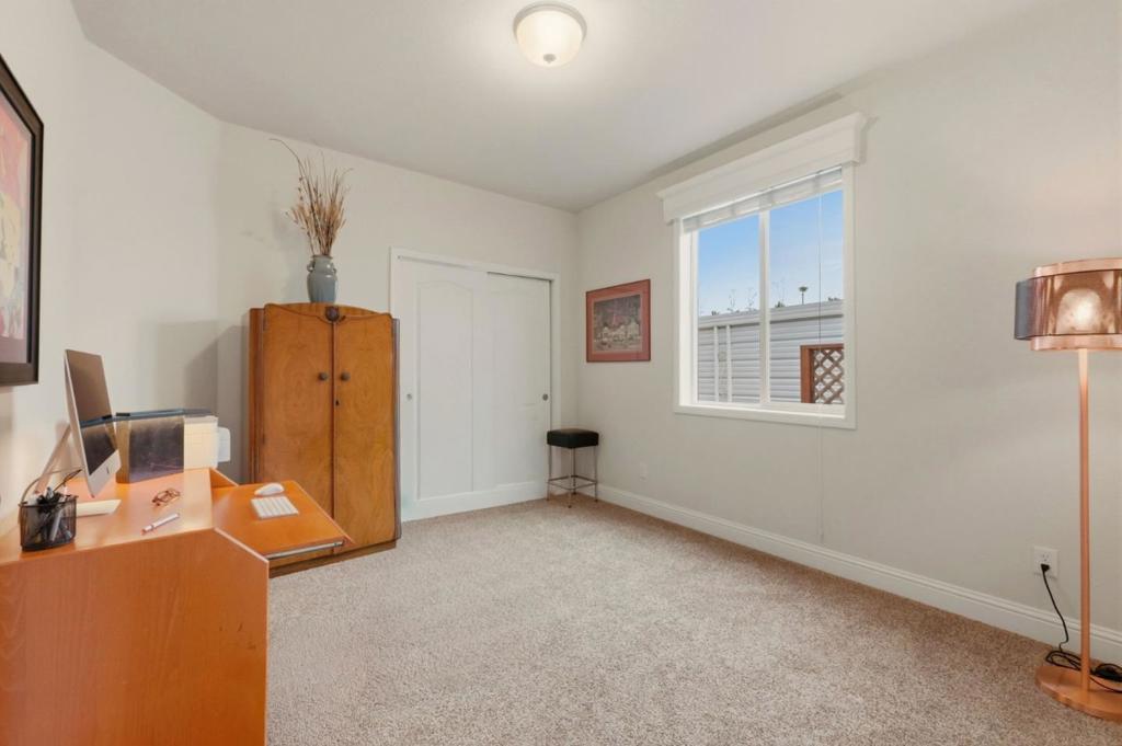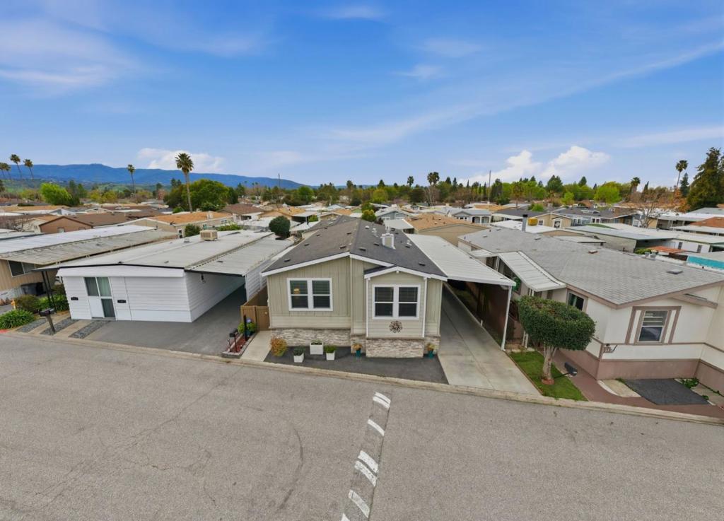 Affordable Luxury Living in San Jose! This elegant 3-bedroom, 2-bath modern manufactured home offers 1,512 SF of bright, open-concept living with soaring ceilings & abundant dual-pane windows that fill the home with natural light & wood shutters to enhance both the aesthetic & peaceful, quiet interior. The spacious living room features a cozy gas fireplace & flows seamlessly into the dining area & expansive chefs kitchen, complete with stainless steel appliances, contemporary cabinetry, generous storage, & beautiful granite counters. Stunning flooring throughout, paired with plush bedroom carpeting, + central A/C creates a move-in-ready vibe. Retreat to the resort-inspired primary suite & ensuite bath showcasing a soaking tub, separate shower, private water closet, & walk-in closet. Outside, enjoy exceptional privacy with shaded screening along the driveway & custom pavers, trellis accents, & lush landscaping in the side and rear patios, creating a serene, Zen-like outdoor escape. Ideally located in the highly desirable 55+ Town & Country Village community in San Jose, this home offers low space rent of $1133 & convenient access to shopping, dining, & recreation. An exceptional opportunity for those seeking comfort, style, and the chance to begin building equity in homeownership.